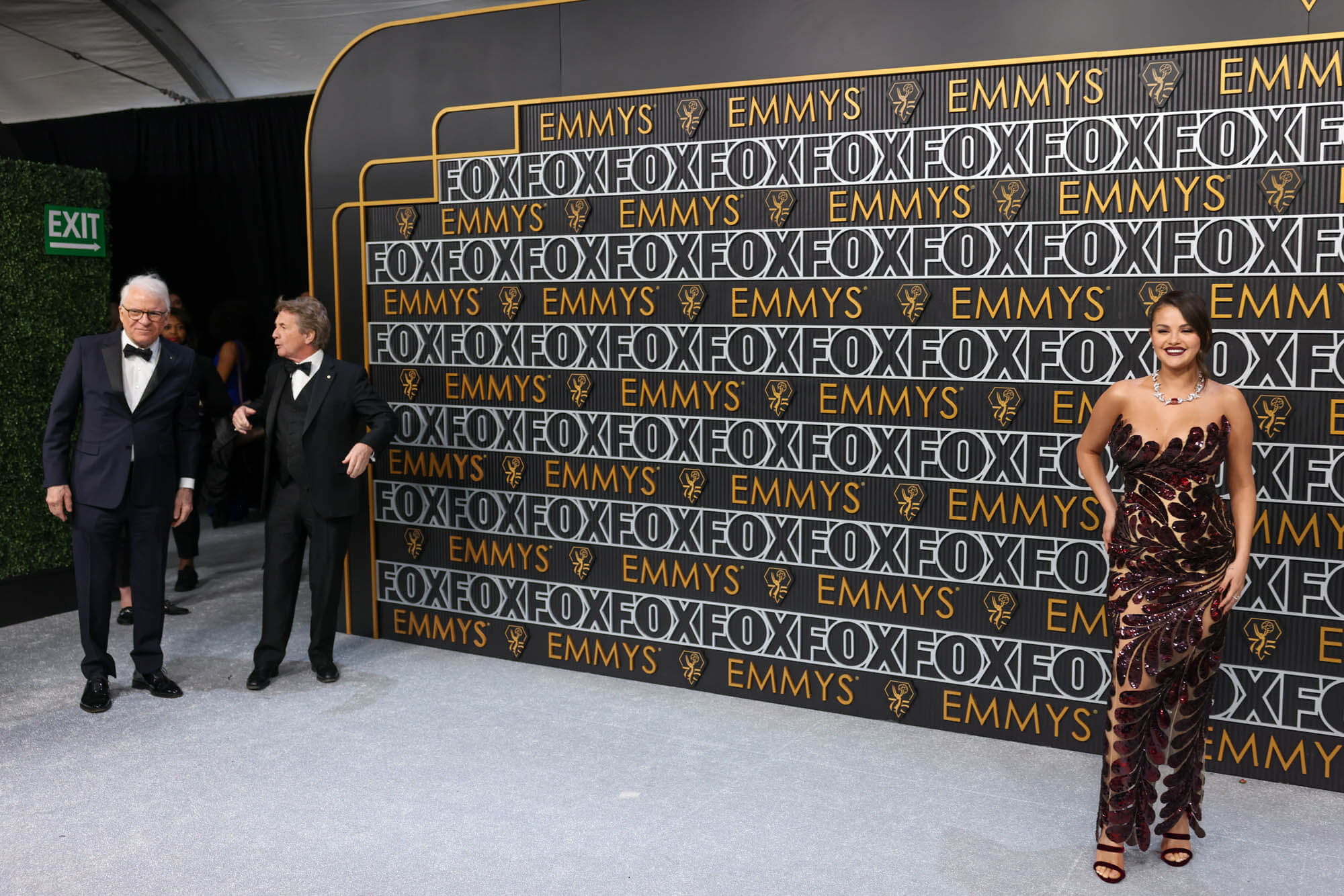 .@SelenaGomez and @ItsBennyBlanco take their seats with #OnlyMurders' Martin Short and Steve Martin at the #Emmys pic.twitter.com/YSTrwN6QiL