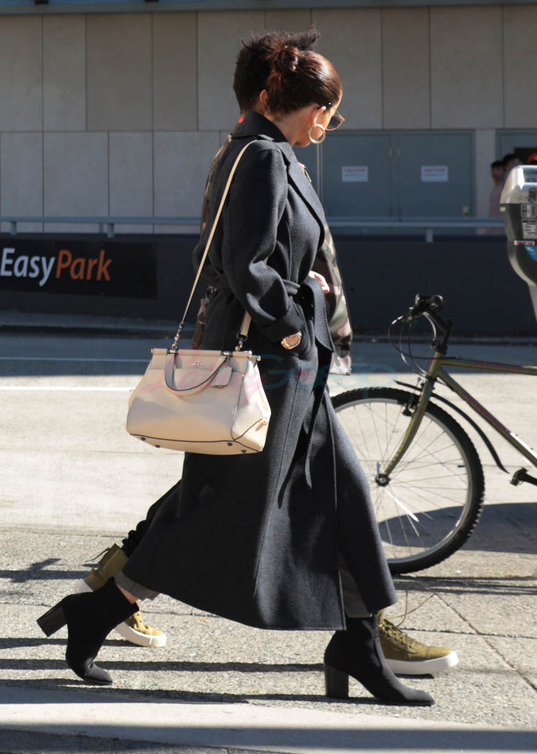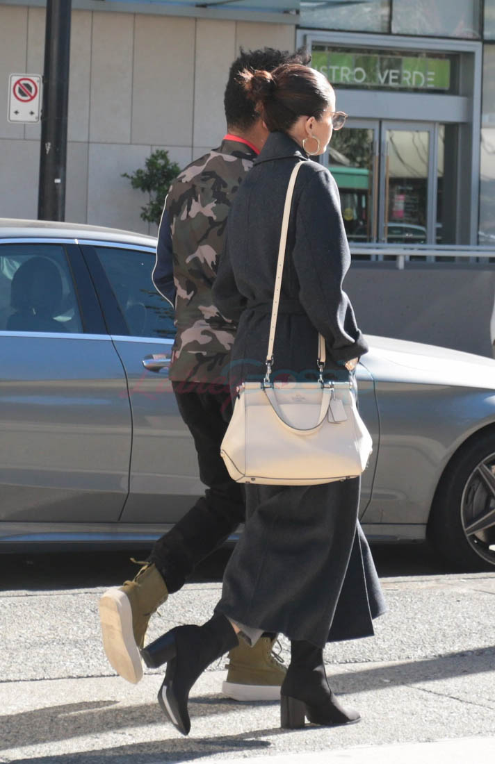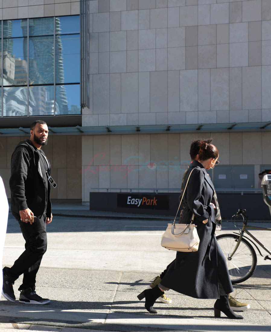 The Weeknd played a show in Vancouver last Thursday. Selena Gomez joined him on the trip. Here are exclusive photos of them walking around town that afternoon, on Georgia Street, near the museum, accompanied by a couple of bodyguards.