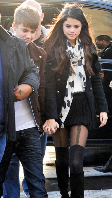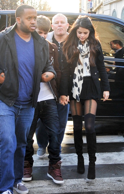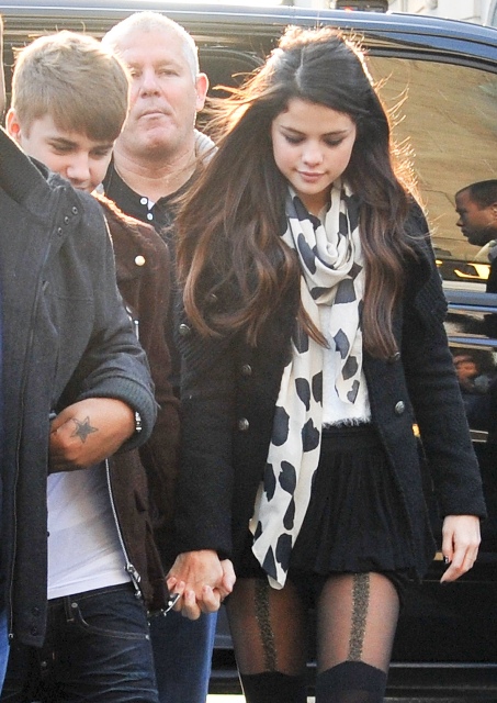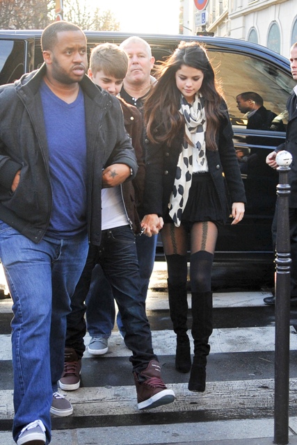 Because....on her I kind of love it but it’s also a little extra for a trip to eat some lunch, you know what I mean? And how do people wear skirts this short and sit down? When they’re in the back of his SUV, how far does it ride up? I’m not being pervy, I’m actually curious on a practical level. That would be my fixation getting dressed in the morning: how do I sit in a car with a boy and not have half my ass hanging out? Selena doesn’t seem to be worried about this.