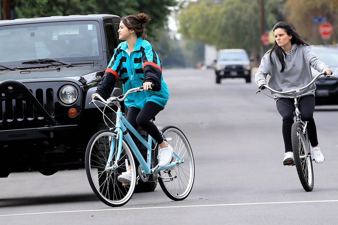 Selena Gomez has been papped a couple of times this week out biking with friends. It’s been a high profile few days for her, starting last week when Justin Bieber was sighted at her house. And her interview with The Today Show about the kidney transplant aired on Monday. That was the same day that it was confirmed that she and The Weeknd broke up. And, supposedly, he was the one who broke up with her.