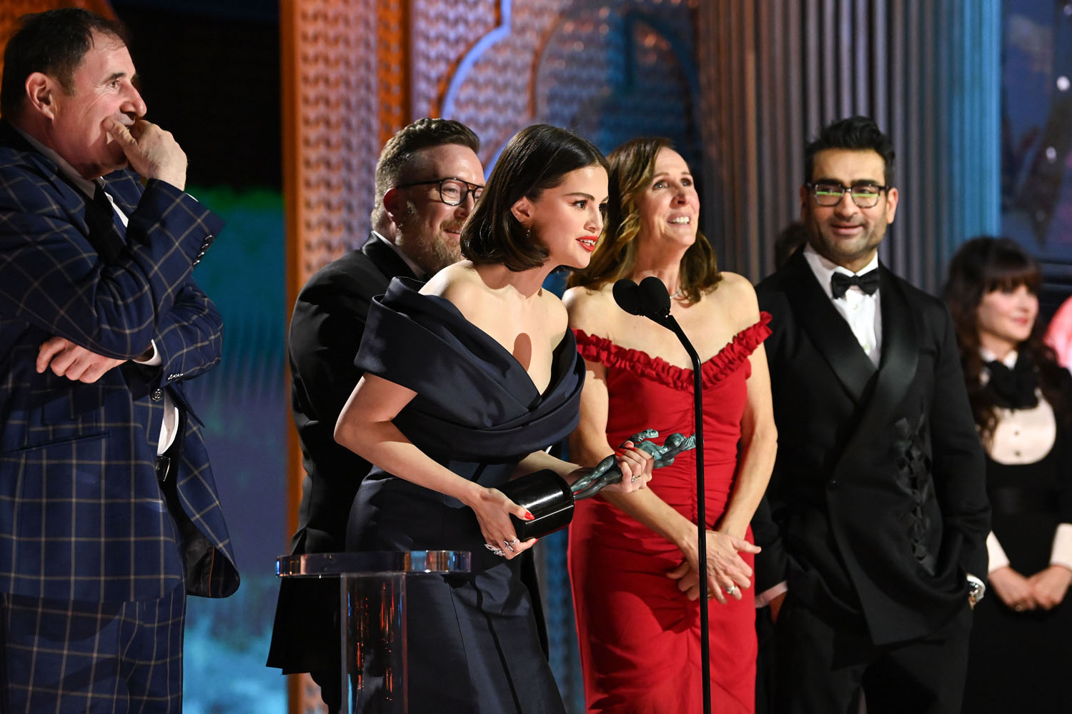 Finally! A win for Only Murders in the Building – two actually! Because as Selena Gomez said at the SAG Awards last night, they always lose. And they have been… for four f-cking seasons. So it actually was a surprise when Martin Short won Best Actor in a Comedy and how sh-tty for him that he had COVID and couldn’t be there.