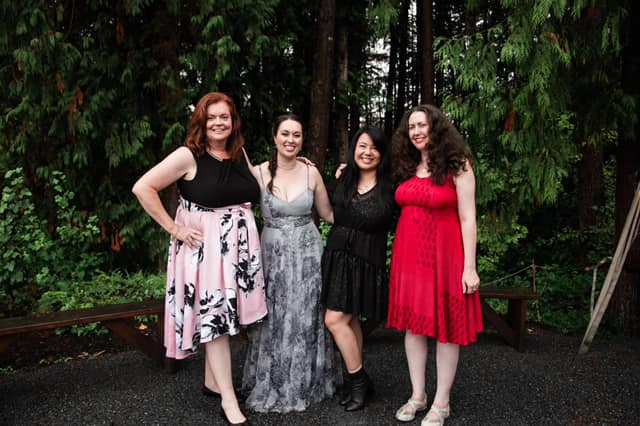 For Ariel and Mel from the Muffin Wallopers (LOL, that name!) – HAPPY FIRST ANNIVERSARY! I love how all of you met and bonded over gossip. I love that gossip has kept your friend group together. I love that gossip is a part of your lives! And … Ariel… that bridal hairstyle on you, MY GOD, and the dress, holy sh-t, you are SO beautiful!