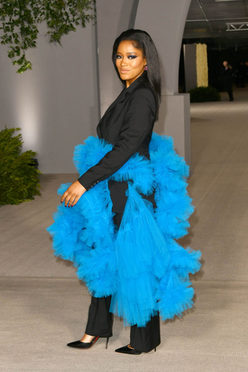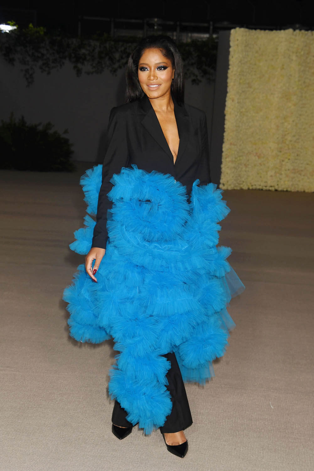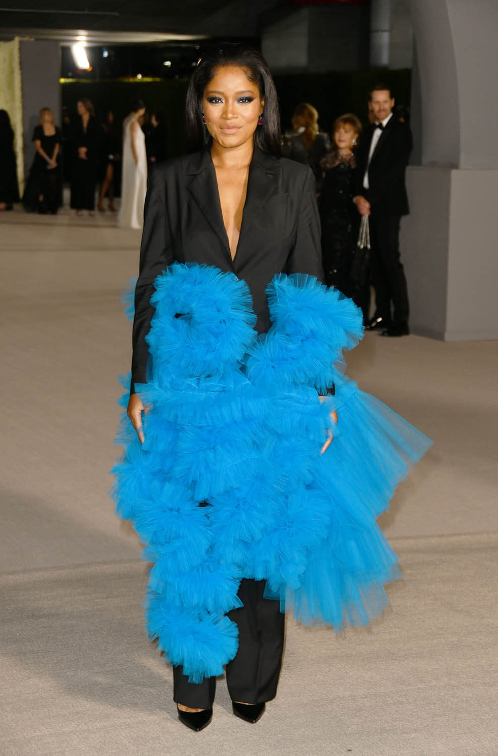 Law also styled Keke Palmer and lit up a black suit with an explosion of blue tulle. I love the imagination in the design – because tulle is typically paired not with pants, and seeing it used in this way is so fresh and contemporary.