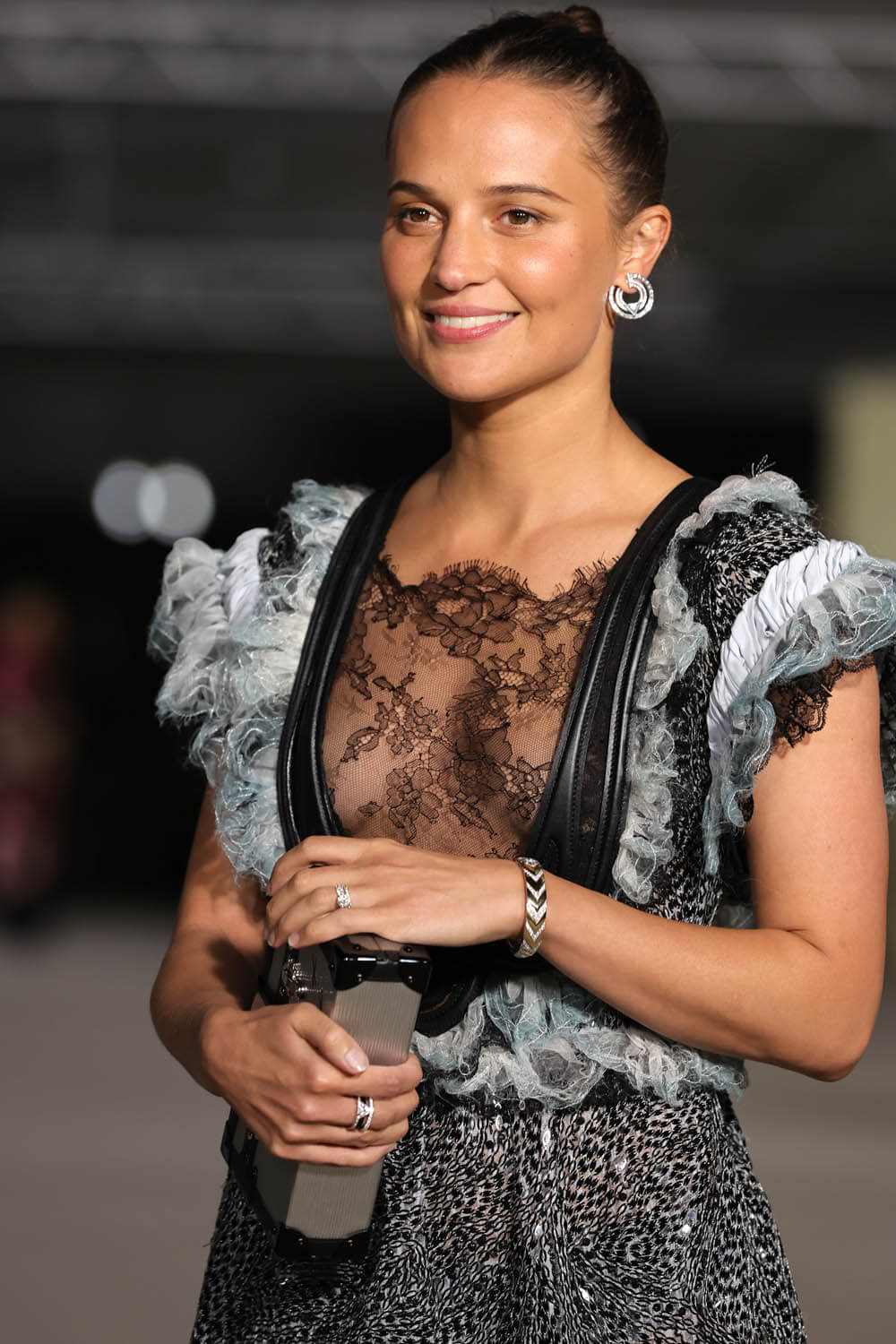 Finally, a big showing for Louis Vuitton with at least four ambassadors at the gala: Jung Hoyeon, Emma Stone, Alicia Vikander, and Sophie Turner. As you can see, black lace seems to be the LV vibe right now with all four women showcasing black lace in their outfits. Sophie is definitely the outlier though, with the riding jacket worn over a leather dress, and I am obsessed with the quilting on the lapels.