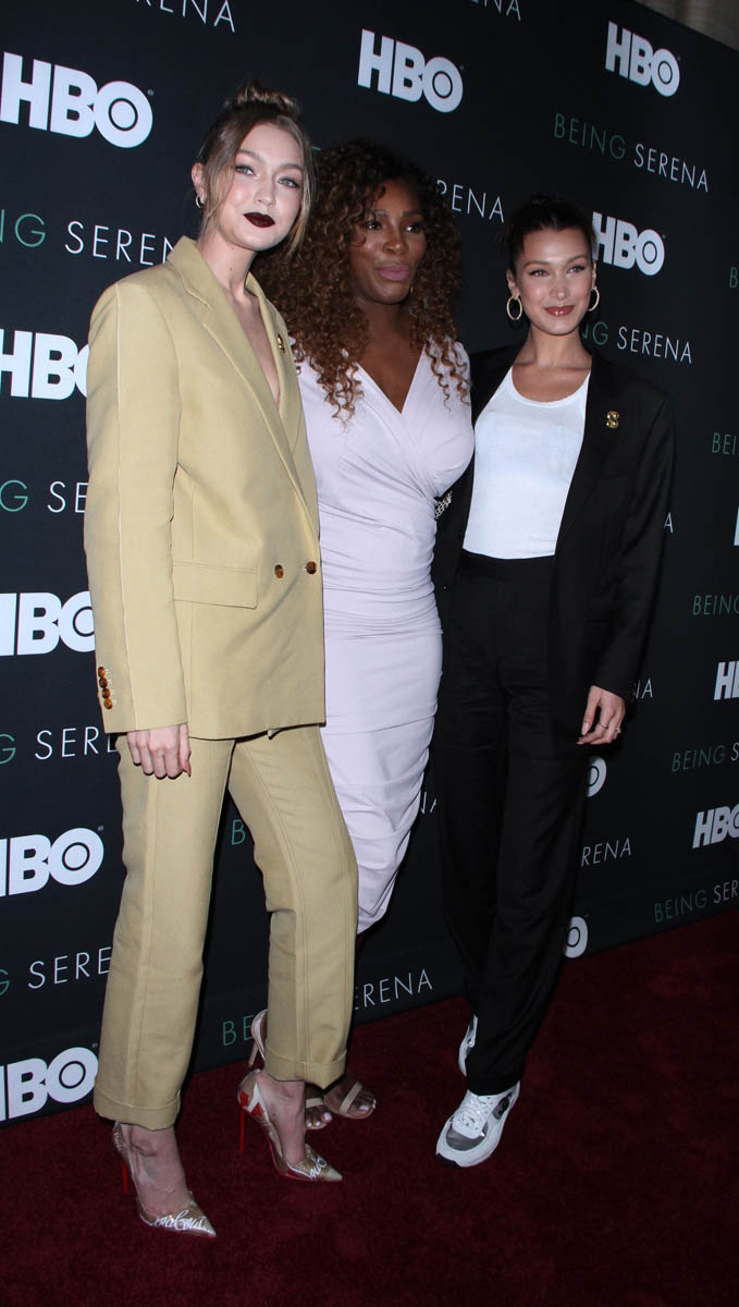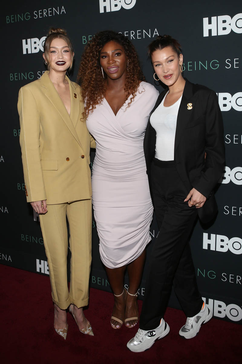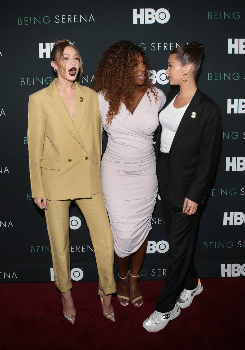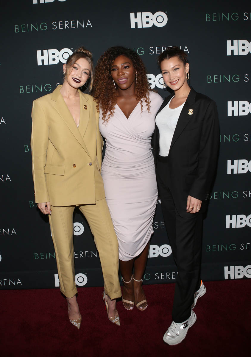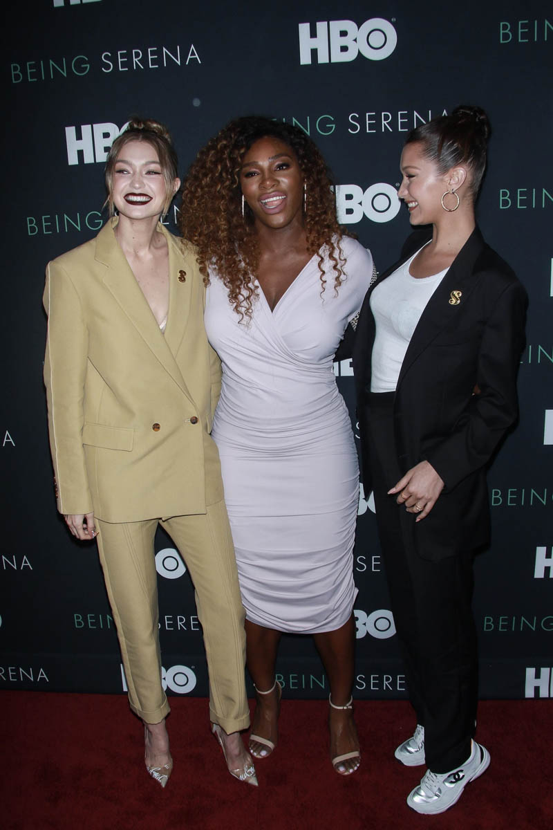 Last night was the premiere of Being Serena in New York City and the GOAT was accompanied by her husband, Alexis Ohanian, her big sis tennis legend Venus Williams, Anna Wintour, Vera Wang and the Hadid sisters, Bella and Gigi.
