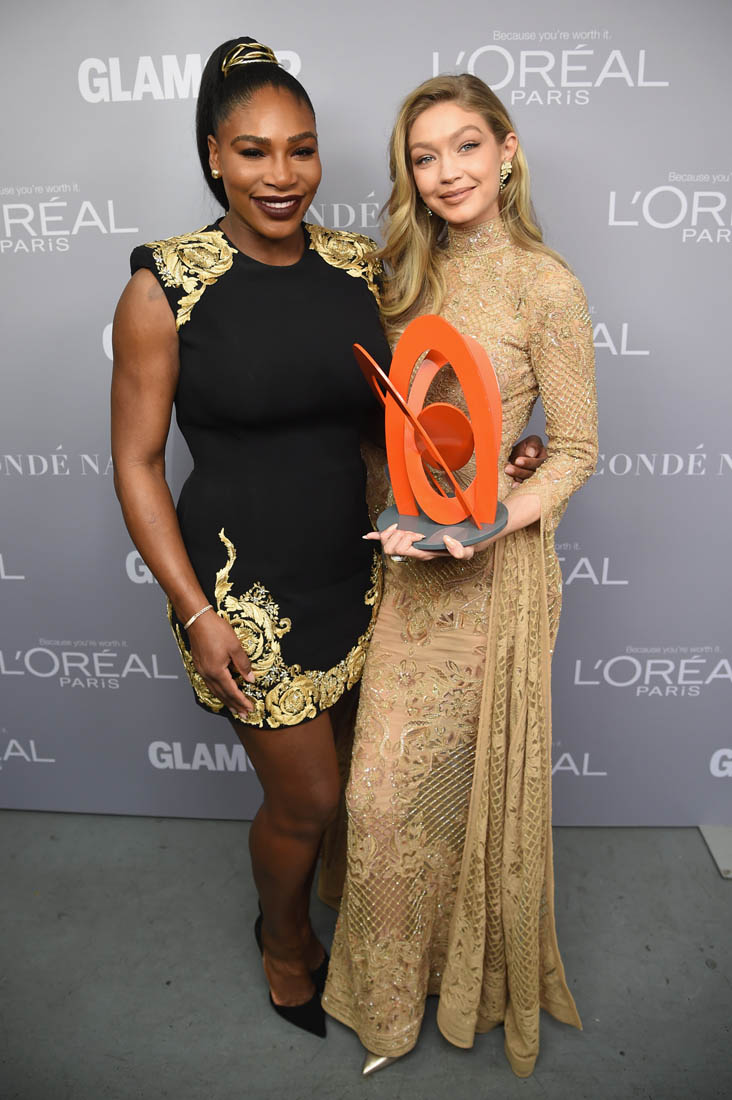 Serena presented Gigi with The Supernova award. I don’t understand exactly what that means or why Gigi was recognized specifically this year but let’s not dwell on that. Being a Glamour Woman of the Year is big honour, absolutely, but isn’t it an even bigger honour when SERENA “THE GREATEST OF ALL TIME” WILLIAMS presents you with that honour? And that she said this?