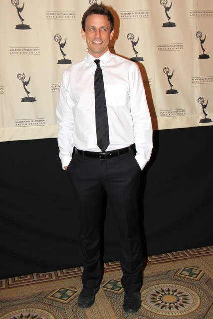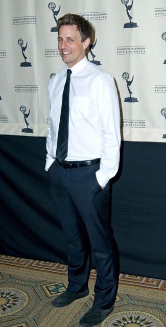 Seth is the kind of boy who doesn’t put his cool out on the table too early. He reveals it to you gradually. Like the way he leans back in his chair. And how the black shirt fits him perfectly. And all of sudden you realise – dude, you have a great hair. That’s Seth Meyers.