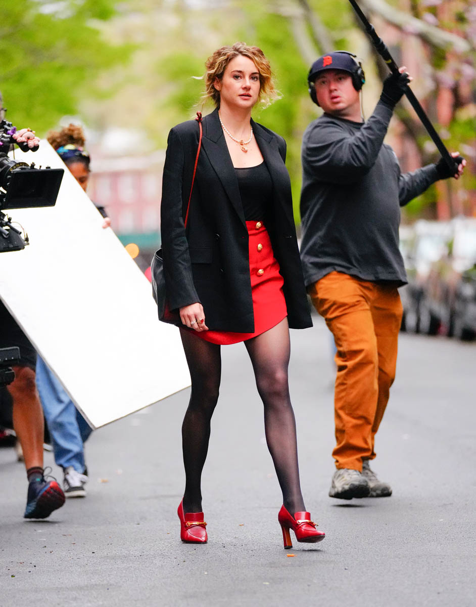 Here’s Shailene in New York yesterday on the set of Three Women, the Showtime series adapted from Lisa Taddeo’s bestselling book. The book is non-fiction, written after Taddeo spent years talking to three women about sex and desire and how their respective circumstances shaped their sexual perspectives and how that changed over time. Shailene is playing the Lisa character, the journalist who travels around the country getting to know the women, and her own attitude about intimacy is affected by what they’re going through too. Wonder if there’s any overlap between her personal and professional life here.
