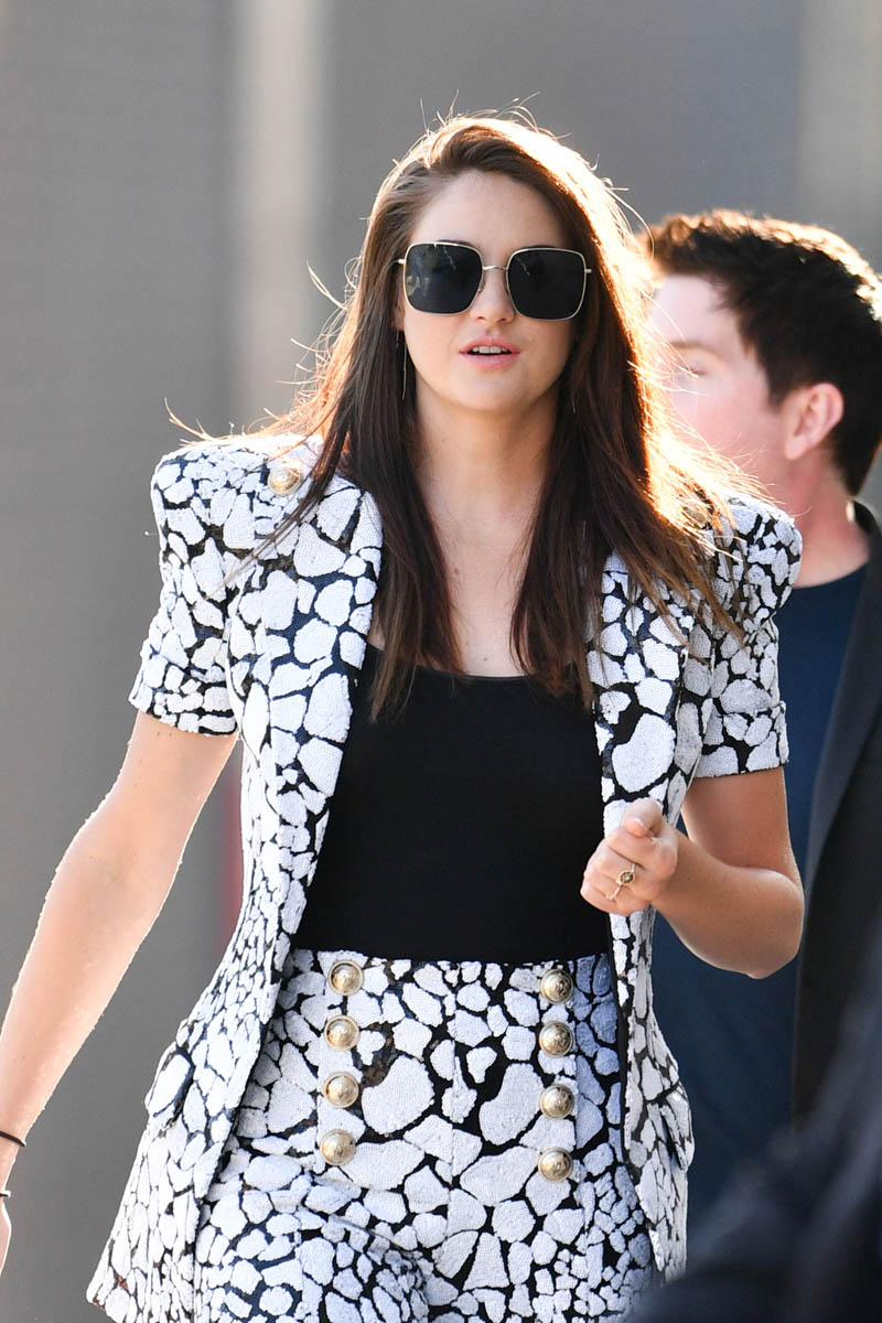 Shailene Woodley does indeed look GREAT at Kimmel in this black and white suit. And I prefer that the jacket is short sleeved! It gives the shoulders a little more shape and that shape happens to go great with the pattern. What would you call this pattern? There has to be a word for it that I can’t find in my mind right now but maybe because whenever I see this pattern, all of think about is “broken asteroid”. Right? Like chunks of matter breaking off from a big ass piece of rock hurtling across space? I’ve seen Armageddon too many times. (Go Fug Yourself)
