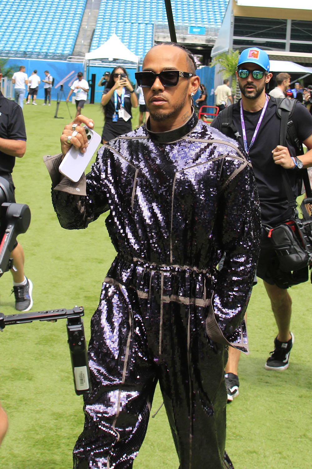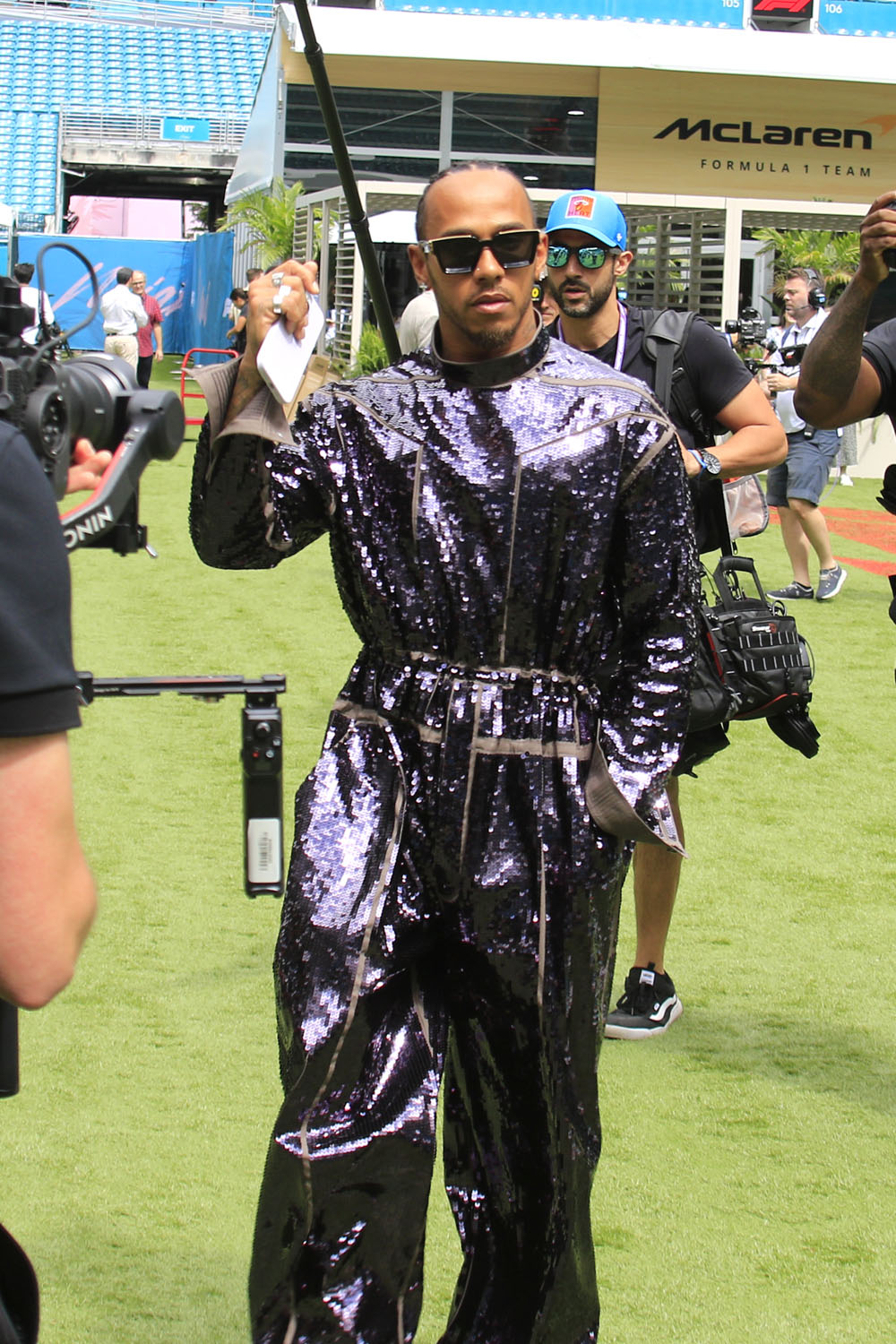 It’s Rick Owens and it’s custom. CUSTOM. Imagine wearing a custom fit just to walk around the paddock for a few minutes. Where is this going to live? How long before he wears it again?!