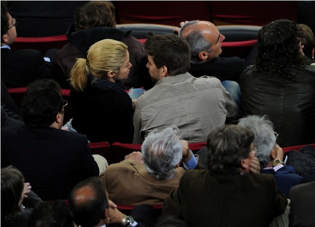 Shakira and her “Sunshine” – click here for a refresher - Gerard Pique, were at the La Liga match between his team Barcelona and Osasuna on Saturday. It was apparently a short bench. Doesn’t seem like he minded. Would you? Shaki is all over it.