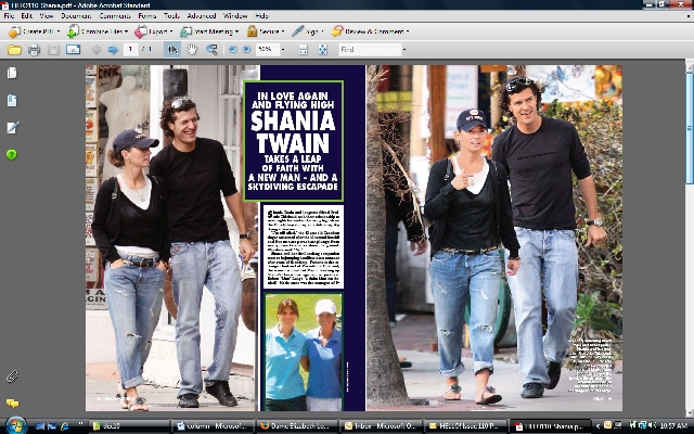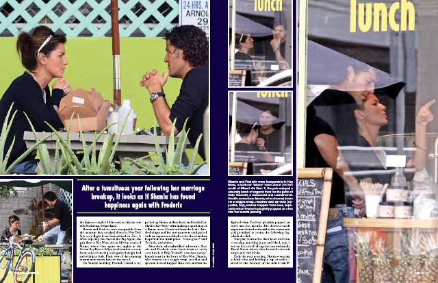 The new issue of Hello Canada features exclusive photos and details of Shania Twain’s romantic hook up with Frederic Thiebaud. Freddy is/was married to that woman with whom Shania’s husband had an affair. Apparently the two jilted spouses are now an item themselves. And they spent a few days togethr last week in Key West skydiving, wearing matching outfits, feeding each other at a restaurant, luxuriating at the spa, happily ensconced at a deluxe resort discovering each other behind closed doors.