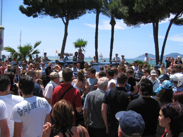 Cannes is an absolute madhouse. First of all, the Croisette is packed all the time. And unless you"ve been given official media accreditation, you just never know where on the beach the photo calls will take place. So everyone just ends up running from one end to another trying to get snaps of the stars and even if you do manage to catch them at a good time, like when I stumbled across Charlie Sheen et al for the Platoon revival, the pappies and the crazed megafans end up bumping you out of the way anyway. Believe me, you don"t want to f&ck with either of those. I did this for all of 2 hours. Then my husband decided to remind me I"m actually his wife and that he did not consider celebrity stalking a fun part of his marriage so we hit the beach instead. Beach, beer, and ciggies. It was fabulous. However, just being in Cannes means that you can"t go a day without running in to someone, no matter how inconsequential. Aside from Bruce and Avril on the red carpet, I did manage to see Tara Reidstumbling about with a couple of friends. In person, she is as raggedy skitty as she is in photos. Except worse. I call it the "Overgrown Mall Girl" look. You know Matthew McConnaughey"s hilarious character in Dazed & Confused? The guy who can"t leave high school? In his 20s, still hanging around the football field because being an adult loser obviously pales in comparison to the glory days of his senior year? Well Tara Reid is the female version. And you can find her low classy clones killing time at your local Galleria, worshipped by 16 year olds who don"t know any better. Tara was bleached and puffy, skirt too short, furtively looking about secretly hoping that people would know - and care - who the hell she was but also pretending not to want to be seen. It was really, really sad. My heart went out to her for a minute. Until she turned to the side and I noticed how her tits seemed to make contact with her knees. That"s when I cursed the bitch for making me gag on my Marlie menthol. Yum. And then there was Liz Hurley, making a grand entrance in a white dress, surrounded by a thousand photographers. I had to climb up on a chair to get a good look while J hissed at me under his breath and then dashed away, evidently regretting the day he proposed. Liz also looks exactly as she does in photos. Except in photos you don"t appreciate how stiff she is. I"m telling you, there is no grace to that woman. Everything, everything is practised and posed and painstakingly calculated. She was sucking in the whole time, muscles taut, her arms flexed unnaturally by her side but were almost, just to eliminate any possibility of someone snapping her from an angle where she didn"t look toned. I was completely fascinated and have since developed a newfound appreciation for the witch bump on the end of her nose. Here"s a girl who wants it bad and will do anything to get it. Elizabeth Hurley, my friends, is a working girl through and through. And hey - we middle class folk have to stick together, don"t you think? As for Kiki and the much hyped Marie Antoinette appearance. Um… so…like…I kinda missed it. The sun, it"s so deceiving in France! The wind blows and you feel a cool breeze and you don"t really know how bronzed you"re getting and then you get back to the hotel and all of a sudden you have a killer tan but all the energy is sapped and you"re dehydrated and well… then you just have to take a nap, you know? The best kind of nap. A post-sun nap. The drool and sweat kind of nap. And when you wake up, it"s dark outside, past 10pm and yay! It"s time for dinner because no self respecting person eats dinner before 10pm in France. But my chance to befriend Kiki was gone…which only meant another night of decadent food and drink. So will you forgive me? I didn"t hook up with Kirsten Dunst, y "all. I had a nap instead. But do you recognise the Queen beside me?