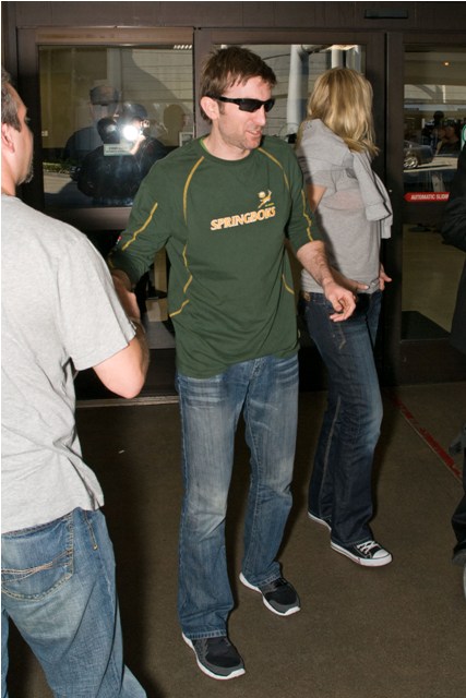 Sarah probably won’t be too happy about this. Sharlto Copley arrived at LAX yesterday with his girlfriend Jeanne-Melanie Haasbroek. Didn’t know he had a girlfriend. Don’t know much about him at all. After all, District 9 was his first time in front of the camera. Before that his work was largely behind the scenes. And now he’s in The A-Team and considering his next acting assignment.