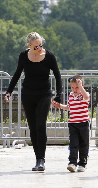 Sharon Stone is in Paris with her son Quinn. Holiday? Sure. And a convenient photo shoot. Just to rub it into your ass how well she looks in her 50s. Like, ridiculous. And totally the opposite of over-processed. Her lips aren’t giving birth to new lips, her cheeks aren’t filled, she has lines, she isn’t trying to be 25, and in not trying to look 25, she’s looking at least 10 years, if not more, younger than she is.