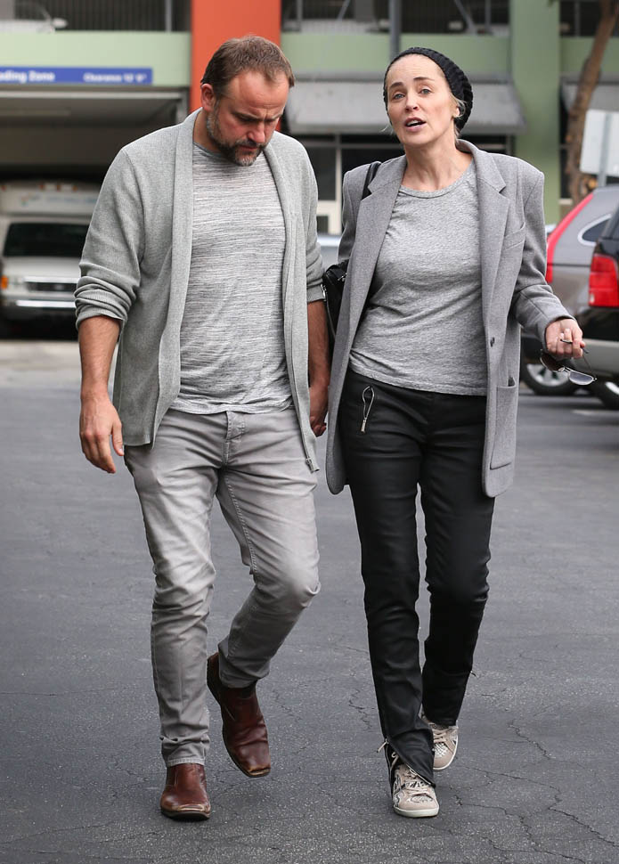 The way I’m reading the progression of the pictures, she turns it up as soon as she notices that the paps are there. See that? They’re walking out of the place, it’s no big deal, then she spots the photographers and the smile comes out. After that, the embrace by the car.