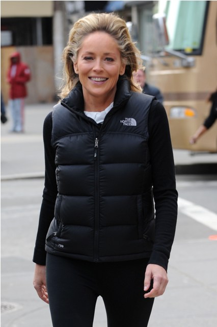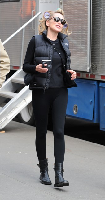 Here’s Sharon Stone on the set of Law & Order SVU. Sure, despite her denials, there’s been some work. But the work is good. The work is not Madonna. Sharon has crows’ feet and lines on her face. Sharon’s lips aren’t taking over her face. There’s nothing holding up her cheeks. She’s even willing to go a little grey. And she’s still a hot bitch.