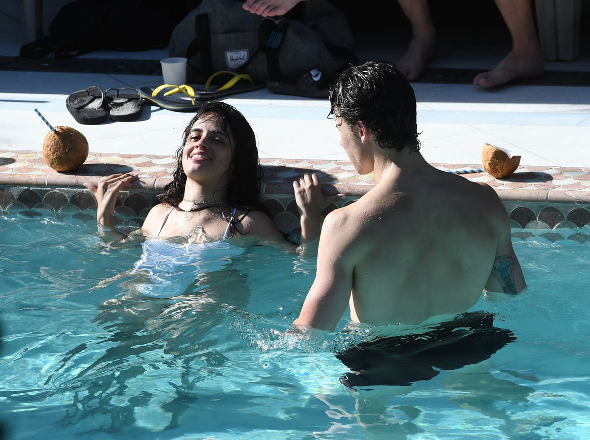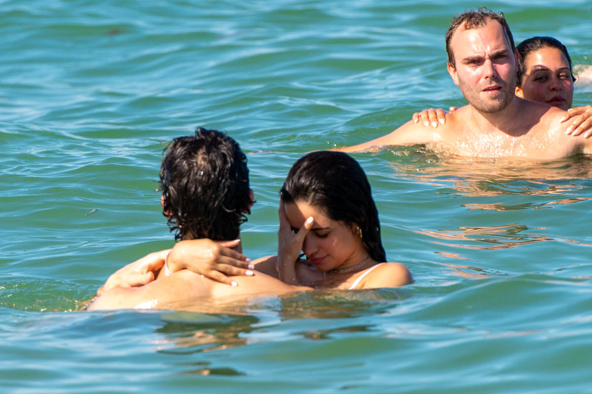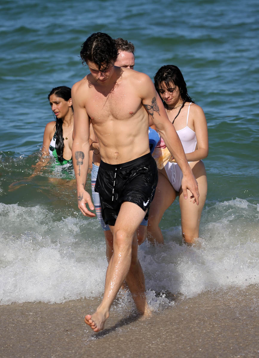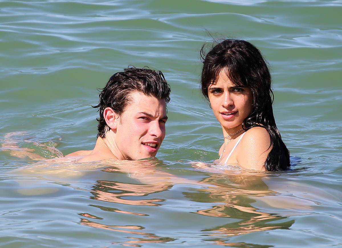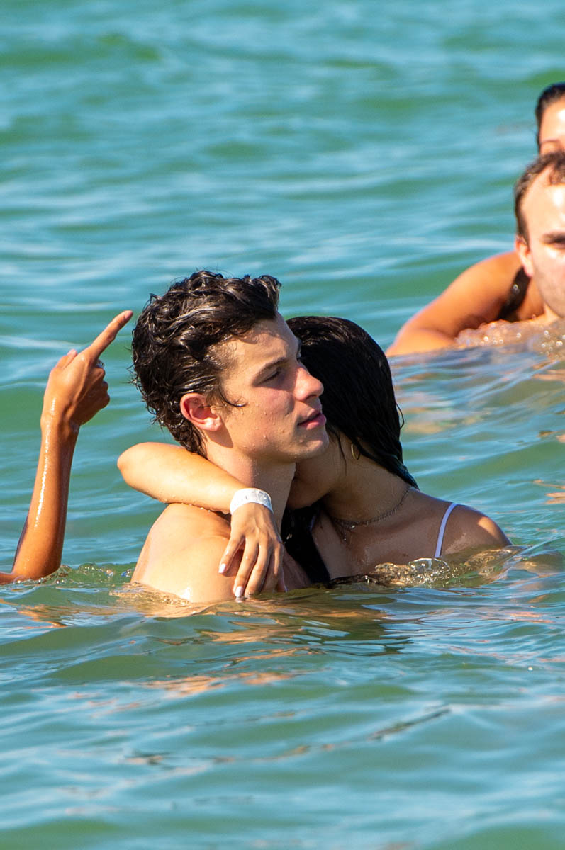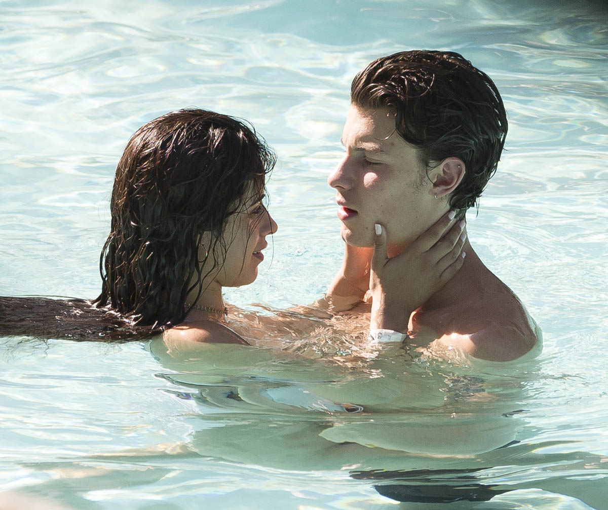I wrote yesterday about Shawn Mendes and Camila Cabello and how they clearly have no f-cks to give right now about what a heatscore they are together. They’ve been inseparable, she’s joined him on tour, the fans keep finding them, they don’t hide. And now they’re at the beach in Miami and in the pool too, kissing, and there can be no mistake now – not that anyone really doubted it – that they are together, that they are Summer Love, the 2019 edition, skeptic be damned.