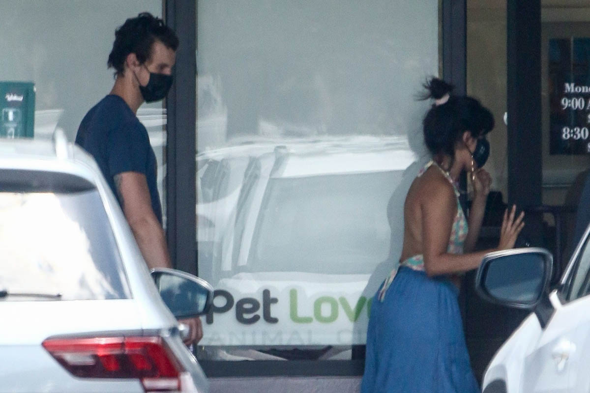 Shawn Mendes and Camila Cabello are currently at home in Florida where her family is based. They were photographed picking up their puppy, Tarzan, from the vet today.