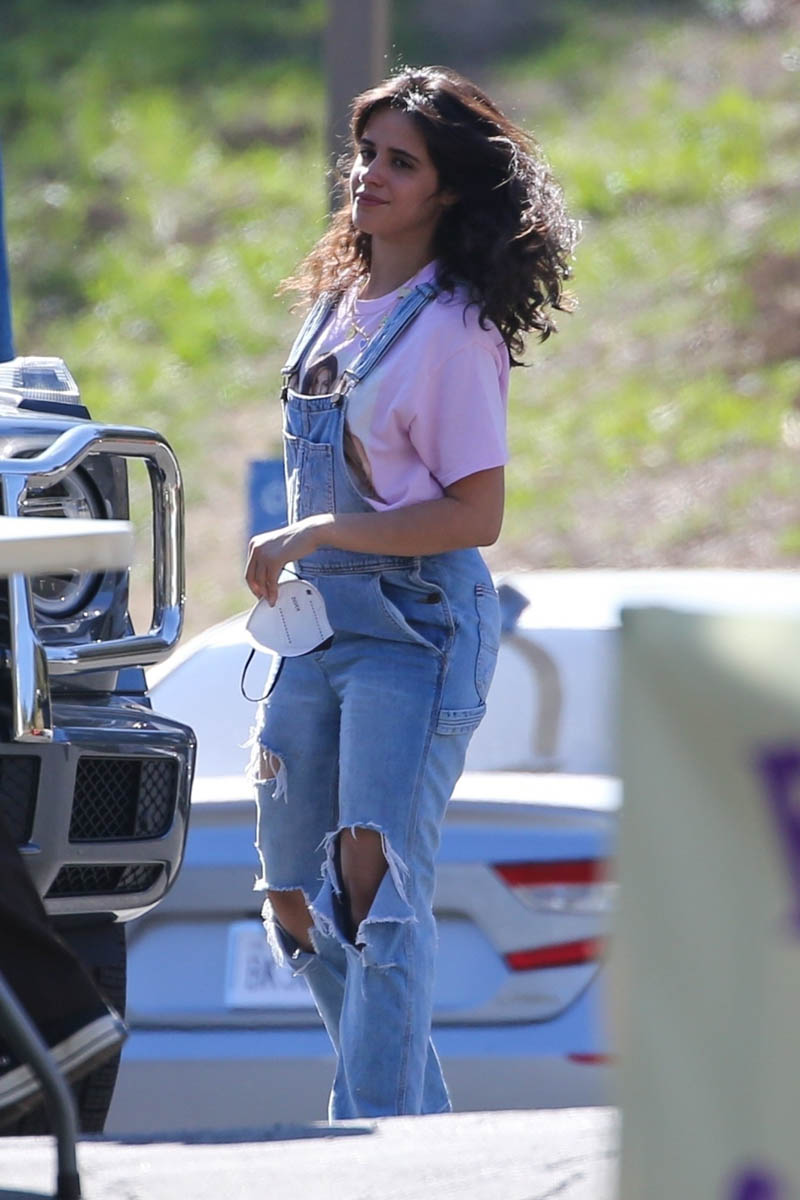 Shawn Mendes and Camila Cabello were spotted arriving at a music video shoot yesterday in LA. Shawn’s back to his signature hair style after cutting that quarantine mane last month and Camila’s in super casual in ripped denim overalls (I can’t wait for overalls season to start) and a Friends tee. The couple were COVID tested together before heading inside a private house for the shoot. But what are they shooting? And are we getting a Señorita for summer 2021?