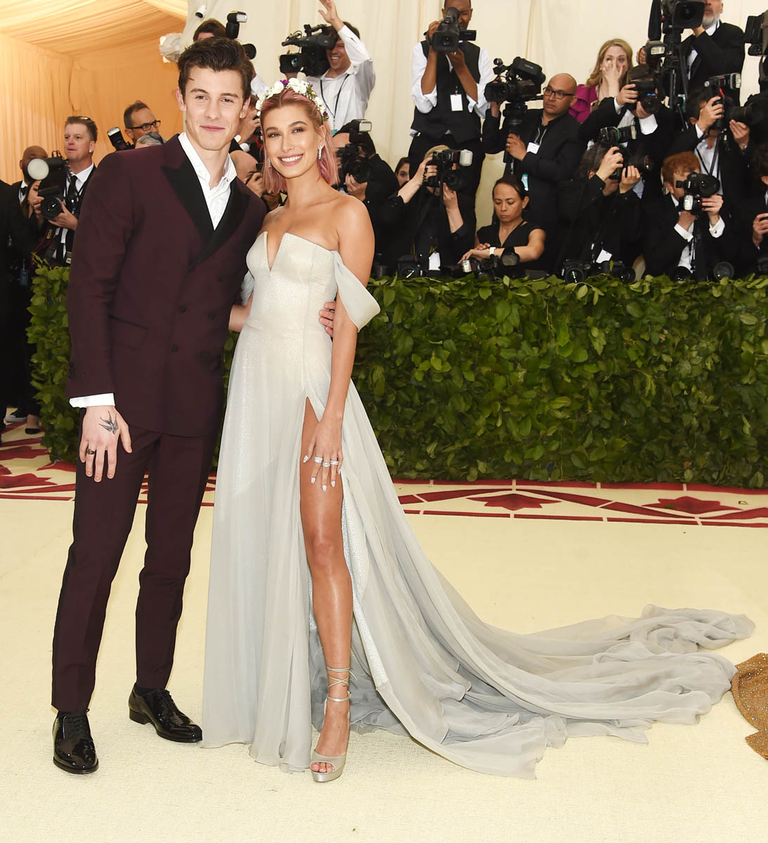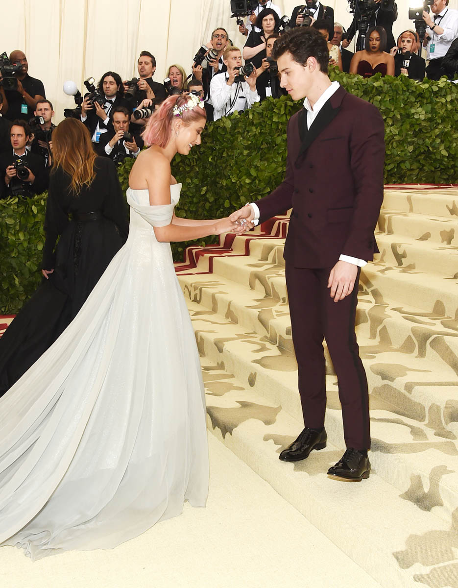The album drops on May 25th. Shawn has been in heavy promotion mode. That is only going to pick up steam in the next couple weeks and he’s just opened himself up to questions about his relationship. His team would know this which means that they welcome it. Shawn and Hailey posed on the carpet but if you watch the footage of them making their way inside, Shawn’s hand never leaves Hailey’s back. He also fixes the train of her dress like a proper Prince Charming.