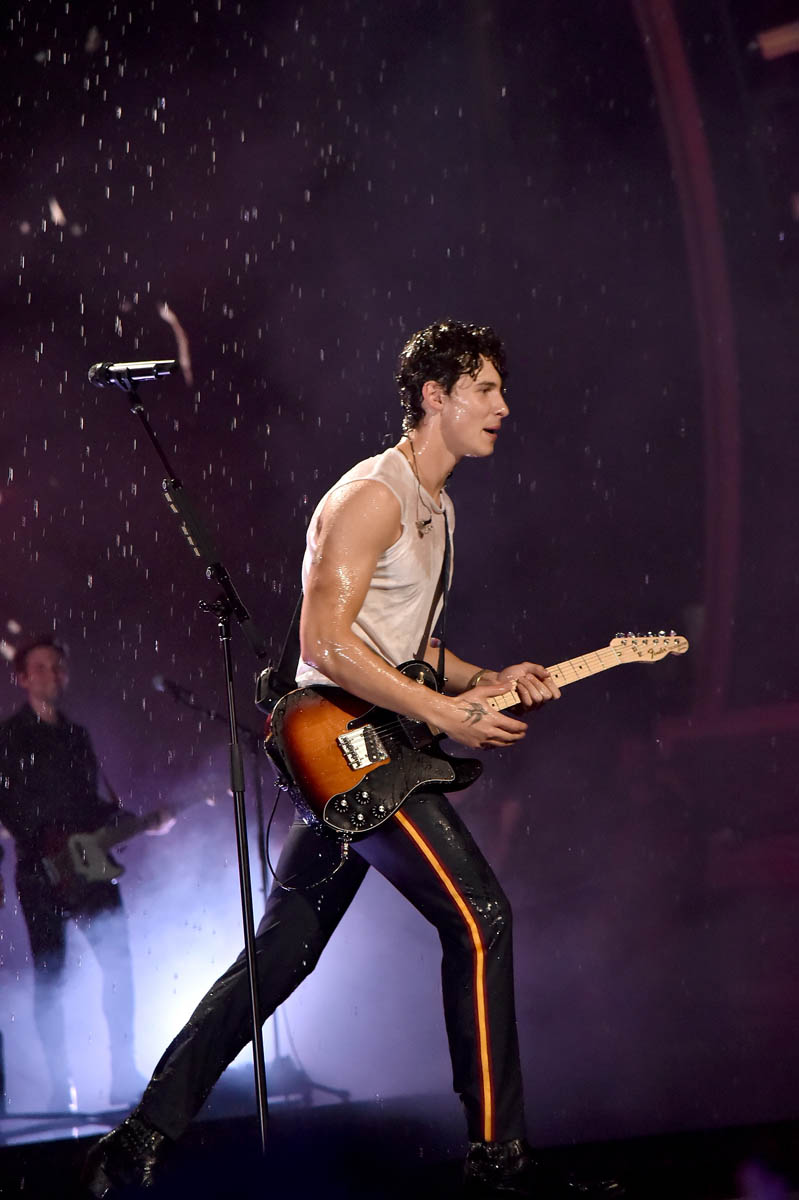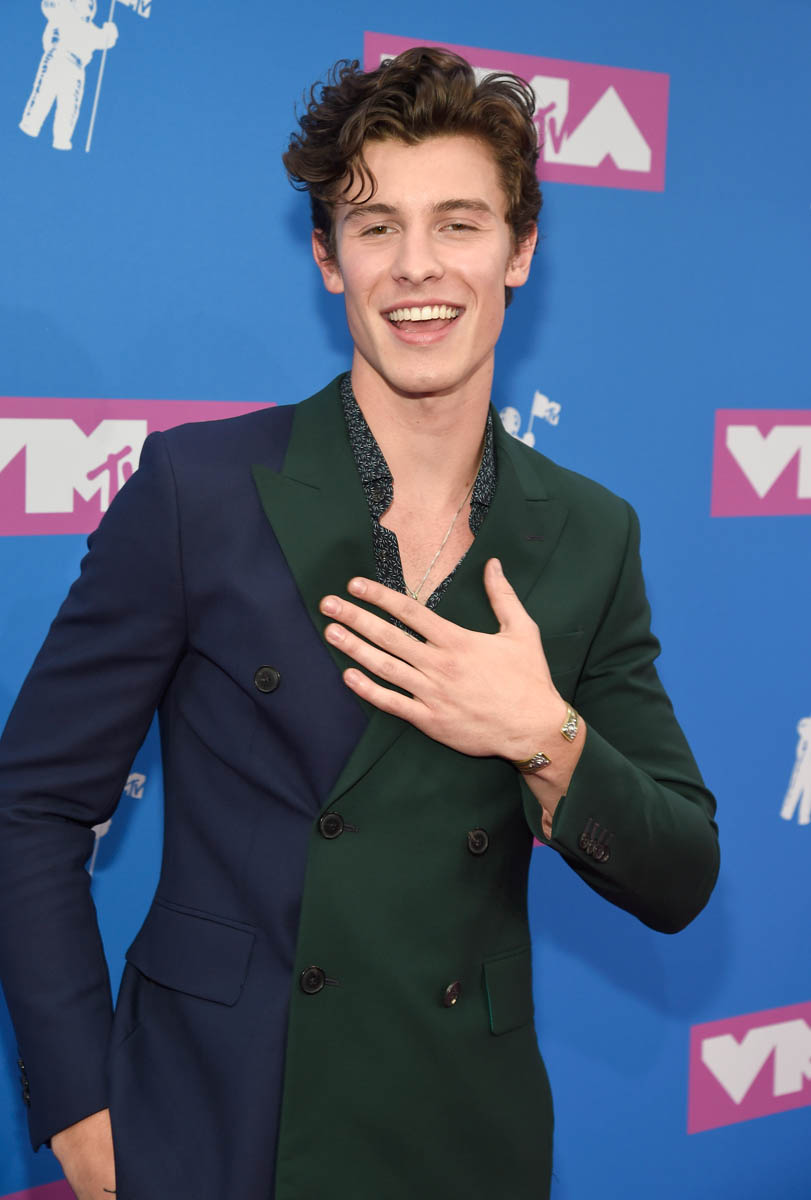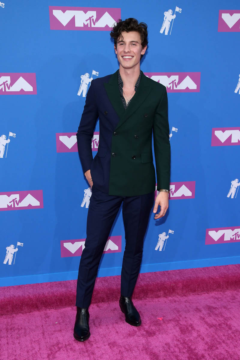 Gorgeous suit, non? The two-tone is delightful. And it fits him beautifully, it fits him like he knows what a good fit feels like. That’s, I think, the difference here that I’m seeing in him. Shawn Mendes has worn great suits before. But last night, at the VMAs, he wore that suit like he knew how to wear it and not like he was trying to wear it. You see this at proms all the time. These young men, they put on suit and they stand up straighter and there’s a stiffness suddenly in how they walk and then they decide they have to put a serious face on which only makes it that much more obvious that they’re Wearing A Suit. It’s hilarious and adorable, watching them literally try to live up to whatever meaning they’ve attached to that suit. Shawn, now, seems to have gotten over it. Justin Bieber is four years older than him and I’m still not sure if he’s figured it out yet.