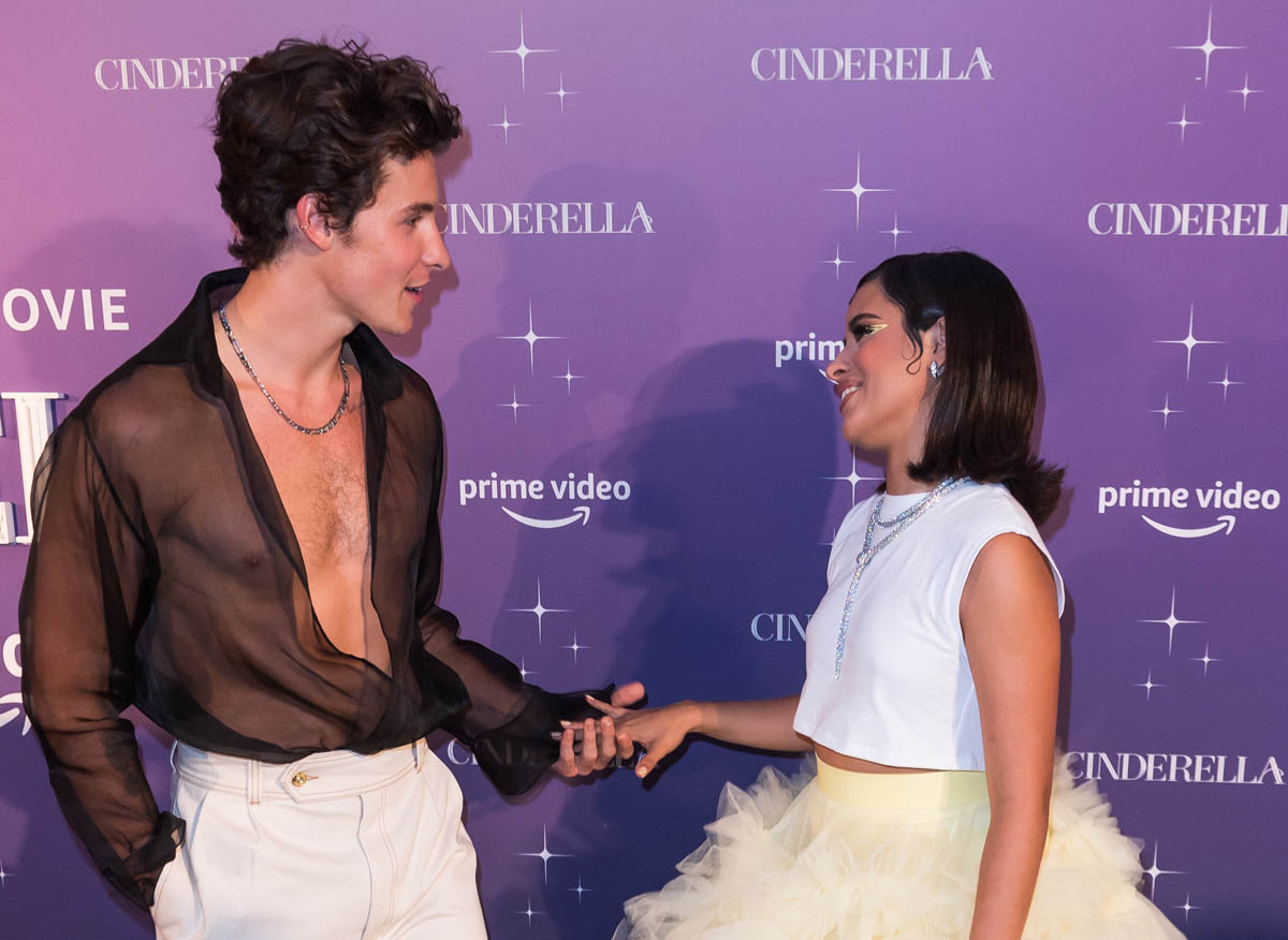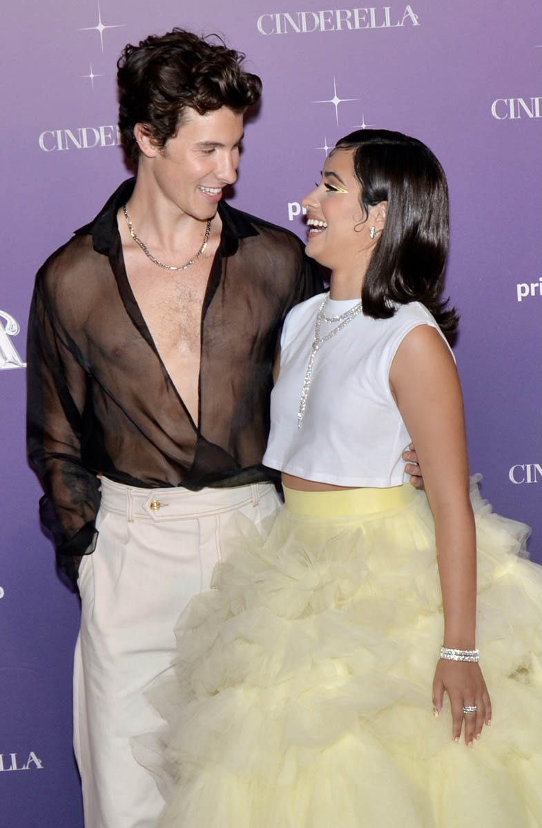 There’s a Prince Charming comment here that I can’t quite land on and it’s corny anyway but you get the idea – here they are, Camila in her princess skirt with a crop top, and excellent eye makeup, and Shawn showing up for an entirely different movie altogether. Is this movie a cross between the fairy tale and Saturday Night Fever? Does anyone reading this under 25 years old understand that reference?