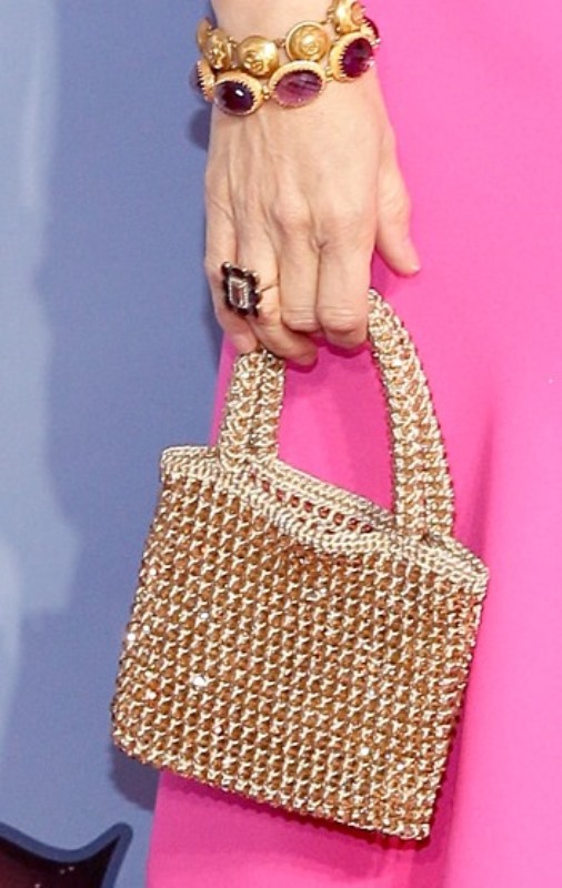 There’s really not much to praise here. The colour is terrible. The style is… cheap, especially that one spaghetti strap. That’s a club dress that ends up in a heap on the floor, you know? And the bag looks like it came from a flea market. I really wish she’d made a different choice.