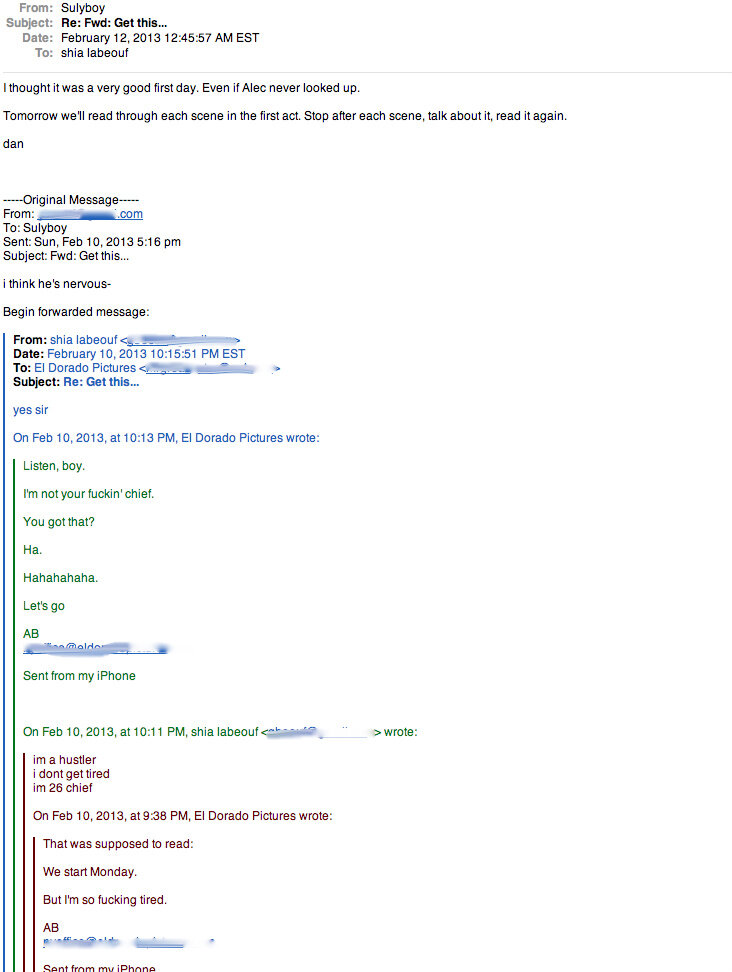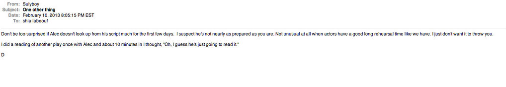 ANYWAY -- f-ck these people are longwinded -- since Alec is calling Shia inexperienced, Shia’s now ratting on Alec for being... unprepared? He’s posting messages from the director that suggest that he’s a more reliable and present worker than Alec, that he deserves a gold star more than Alec does: