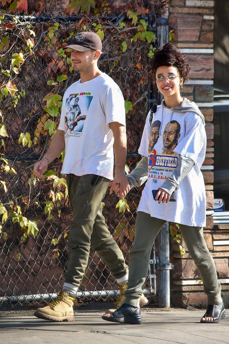 FKA and I are the same age. We’re so young. I’ll admit that I had a crush on Shia around 2008, the early Transformers days. Listen, I’m not proud of it but I was young and impressionable and I thought Even Stevens got hot, OK? I’m going to justify FKA’s attraction to Shia as nostalgia. I also think that she probably finds Shia exciting compared to Robert Pattinson who, let’s be honest, was never good enough for her but exciting isn’t always better.