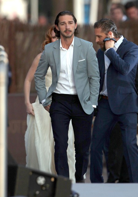 Here’s Shia on Saturday at the Palais and on Saturday night at the Johnny Walker Blue Label party for Lawless. He was in a great mood. His ma was his +1. At one point he was behind the counter mixing drinks. Boy knows his way around a bar.