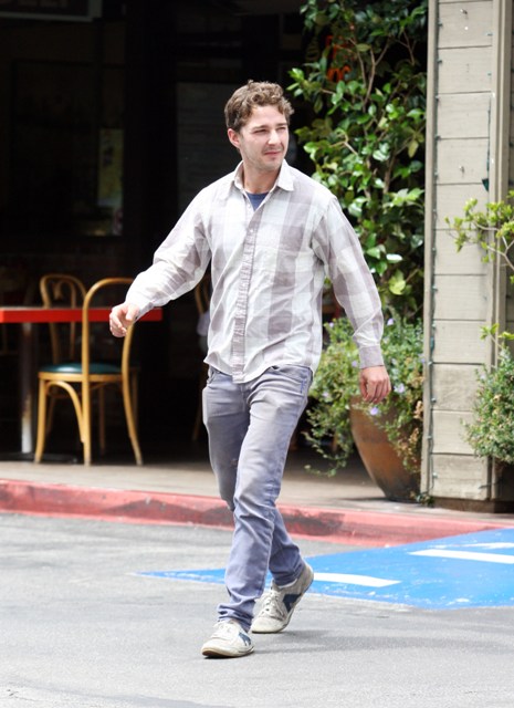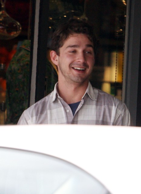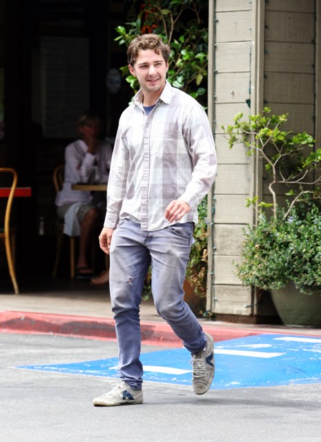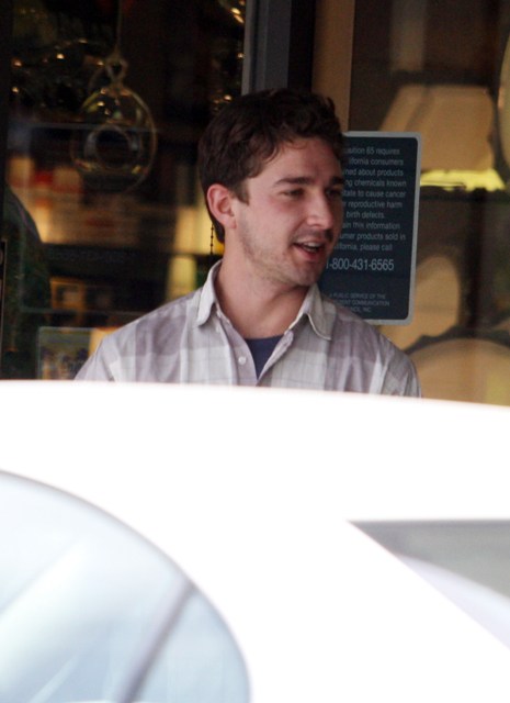 Photos attached of Shia yesterday out and about, looking relaxed and healthy, rolling a cigarette before getting in his car after lunch. Last I heard 3 weeks ago, he and Carey are fine.