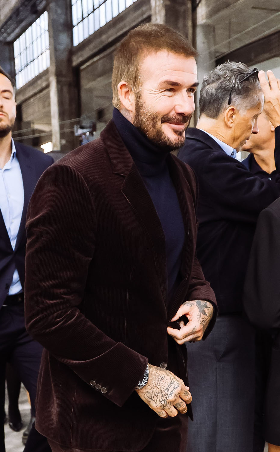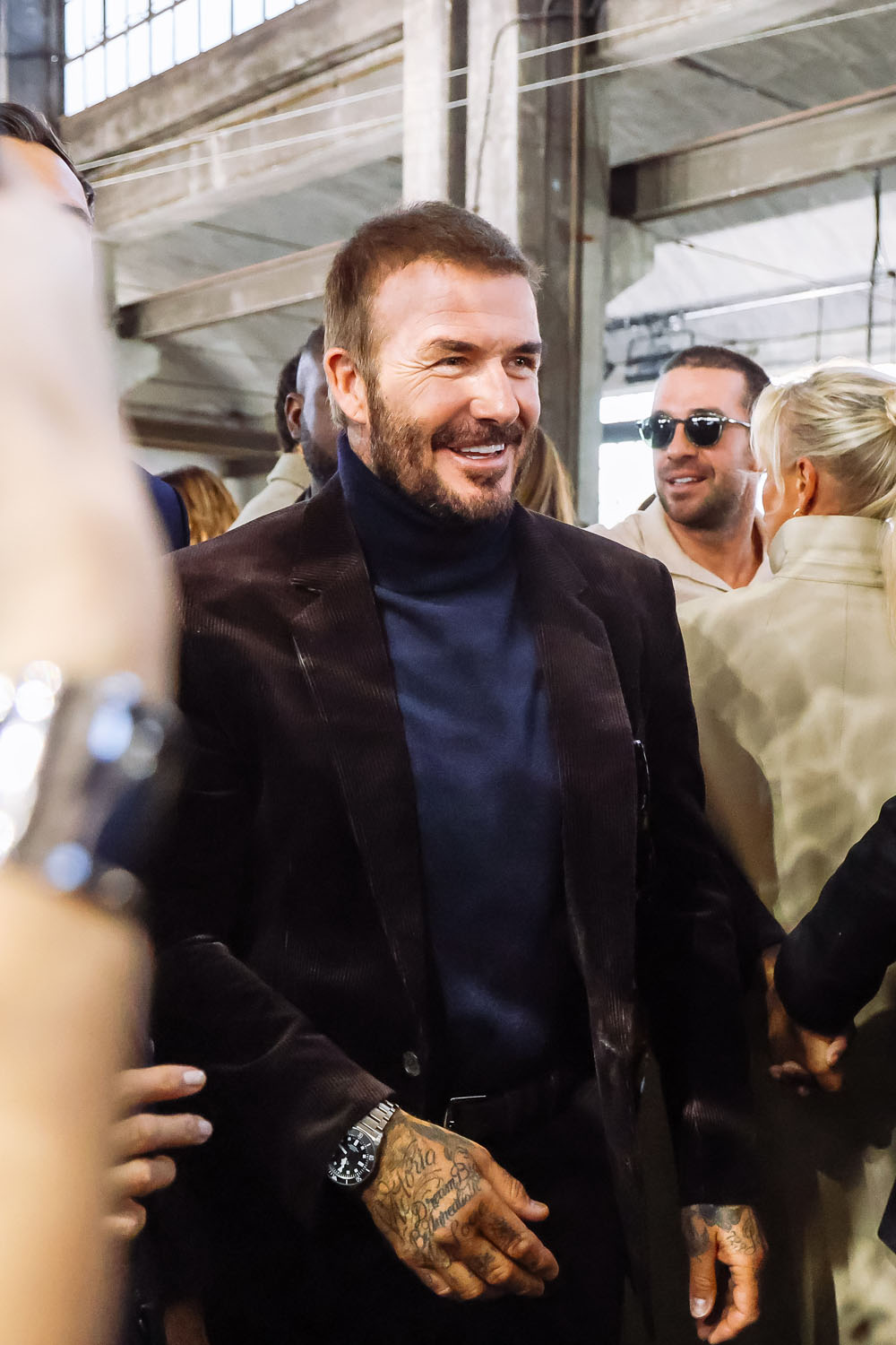 This is a man who knows what the people want, and what the people want is shirtless Becks. Or maybe Bond villain Becks? He turned up to the BOSS runway show looking like he has James Bond tied up back in his villa.