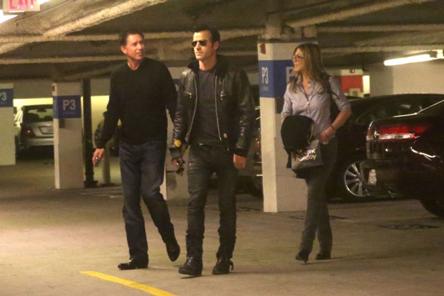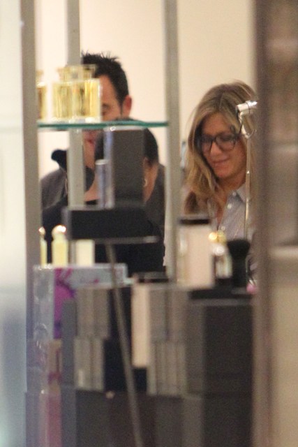 Jennifer Aniston and Justin Theroux went shopping at Barneys in Beverly Hills the other day. According to the photo agency she was buying makeup. I don’t understand why Jennifer Aniston has to buy makeup. When she goes out someone does it for her. And when she’s not out to be seen, she probably has a standard go-to list of products she’s been using for years, which she can easily get delivered. Gift? Possible. Does Jennifer Aniston strike you as a makeup gift-giver? It’s a little... impersonal. And she has an assistant to shop the impersonal items for the not-so-close staffers and vendors and acquaintances on her list, doesn’t she?