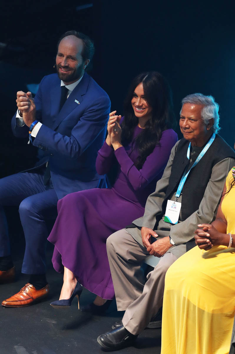 Next… Prince Harry and Meghan Markle – House Sussex is taking on the tabloids and, possibly, the royal courtiers. I’ve posted extensively about their grievances but on this podcast, Duana wants to unpack the endgame: what is it? Because, as we’ve seen, they may have a fight on their hands but this couple has always been really strategic about the moves they’re making. Every strategy has an intended outcomes. What’s theirs? Attached – Meghan of House Sussex yesterday at the One Young World Summit where thousands of young leaders gathered in the spirit of advocacy and activism.