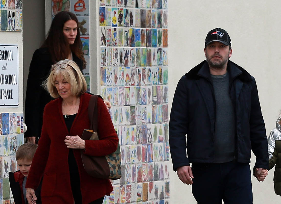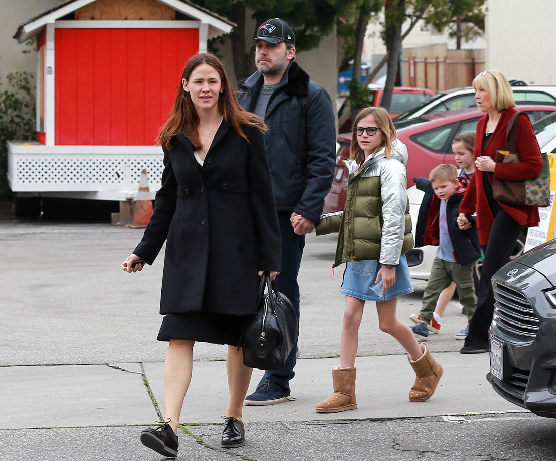 Attached - Ben Affleck out in LA with Jennifer Garner and their kids on the weekend.