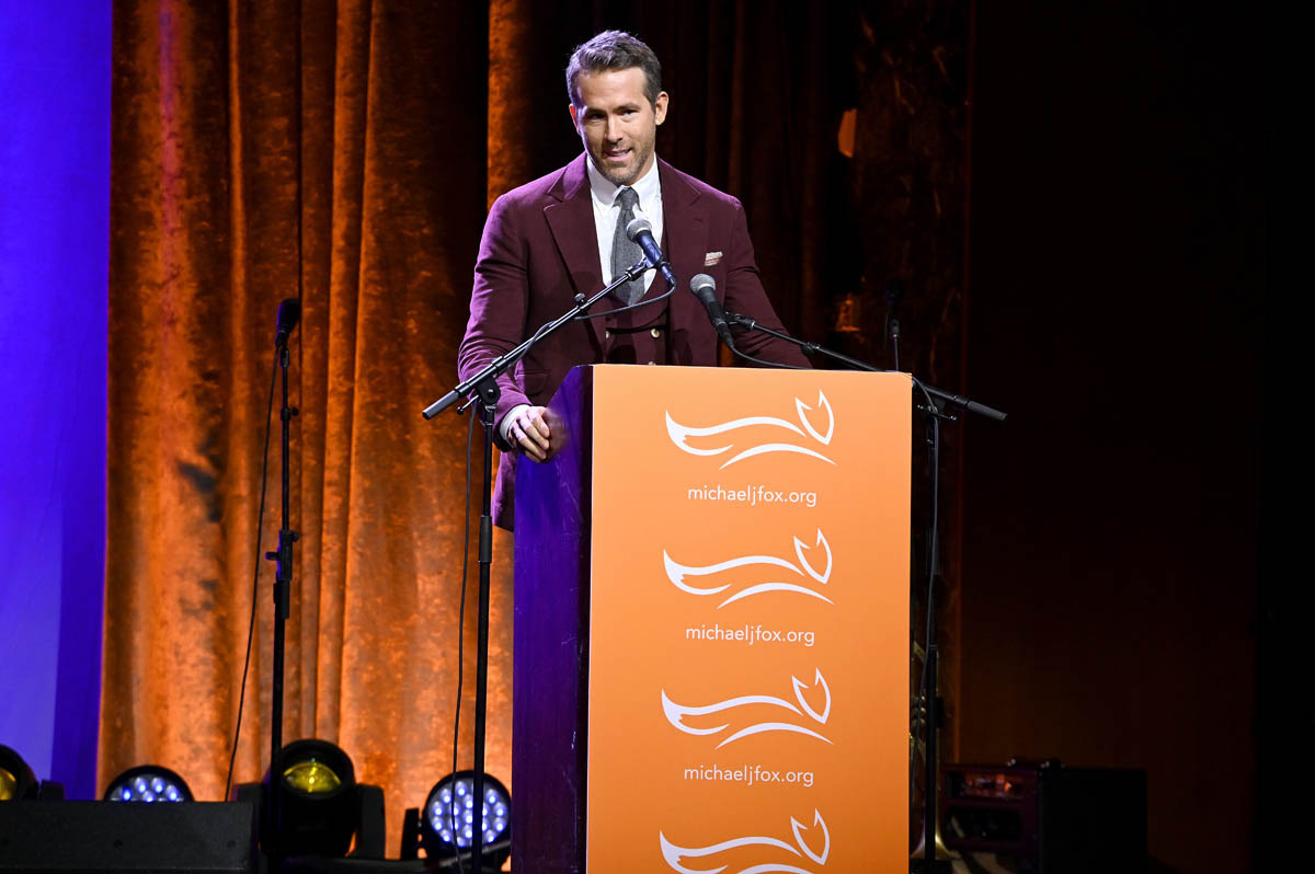 Attached - Ryan Reynolds at the Michael J. Fox Foundation Parkinson's benefit earlier this month.