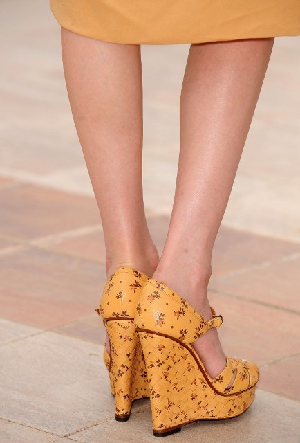 Here’s Shu at the afternoon jury photo on opening day Wednesday in pale mustard yellow, patterned wedges, and her hair loose around her face.