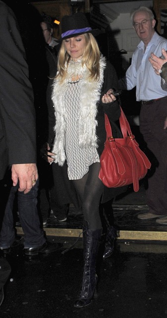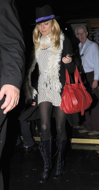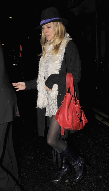 So even though she told reporters she was happily single last week in London, it’s no surprise that Sienna Miller was spotted yesterday totally loved up again with Balthazar Getty, first in the day time walking her dogs and then again last night at the The Groucho Club, making a point of leaving separately to avoid being photographed together.