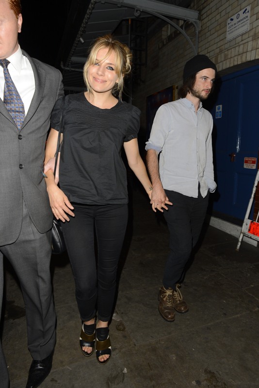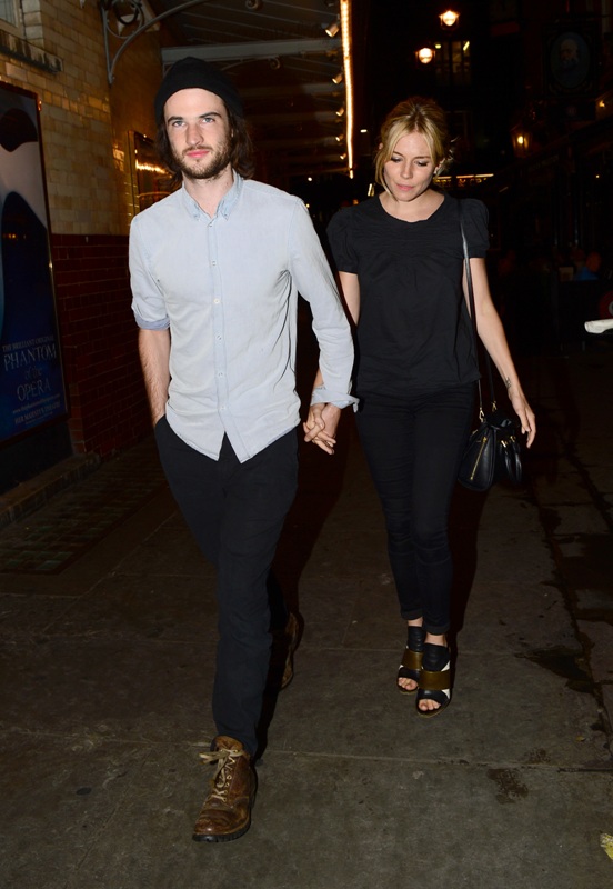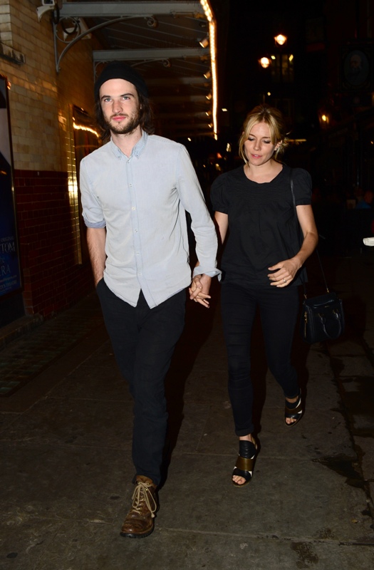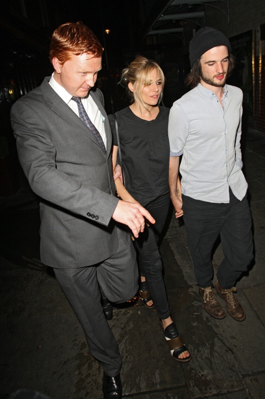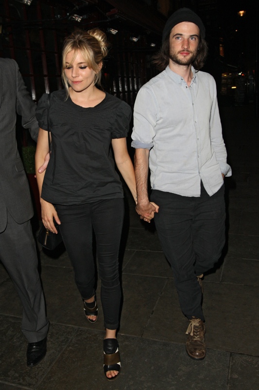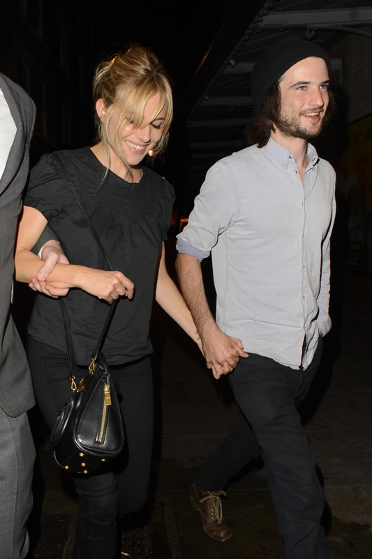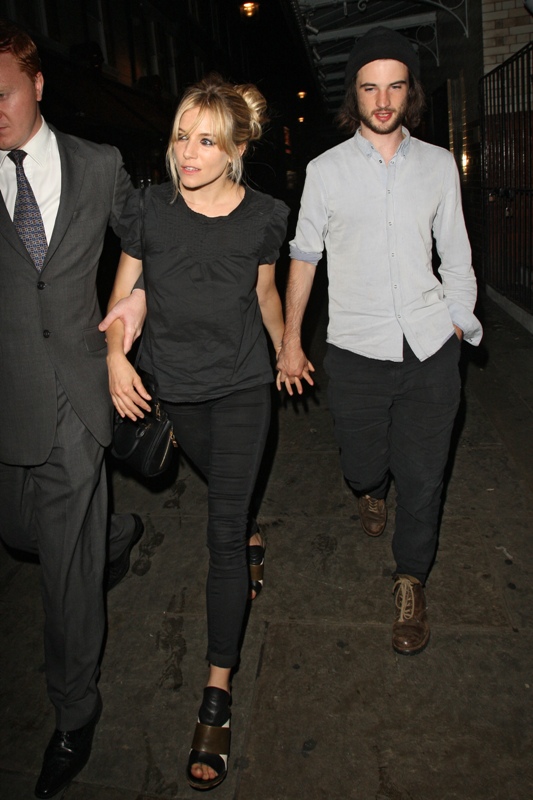 Sienna Miller and Tom Sturridge went out for dinner last night in London. It used to be that Sienna would go out for dinner and DRAMA would ensue. One year she was here at TIFF, with Jude Law, and they went out for dinner, and it was a mess – screaming at photographers, storming off, laughing and smoking five minutes later…