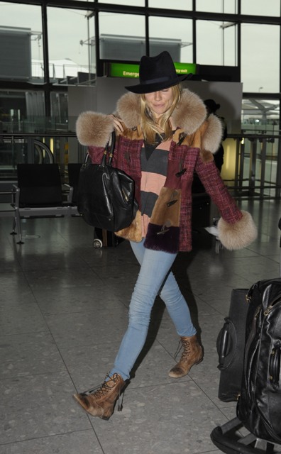 Anyway, this is Sienna Miller at Heathrow today and that coat, that coat would have taken up some space. Same goes for the hat. That’s another thing. I like a travel hat too but it’s also a bitch to pack.