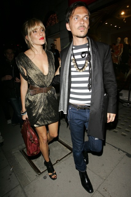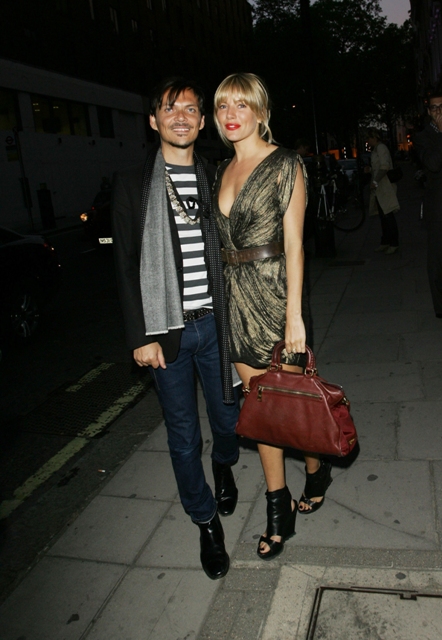 Sienna Miller and her sister accompanied designer Matthew Williamson last night in London at the launch of his new shoppe. She’s been working a new fringe for the last couple of weeks. Looks good, yes, because she’s gorgeous obviously but I prefer her without, not only because I’m personally averse to the fringe but because it’s not very versatile.