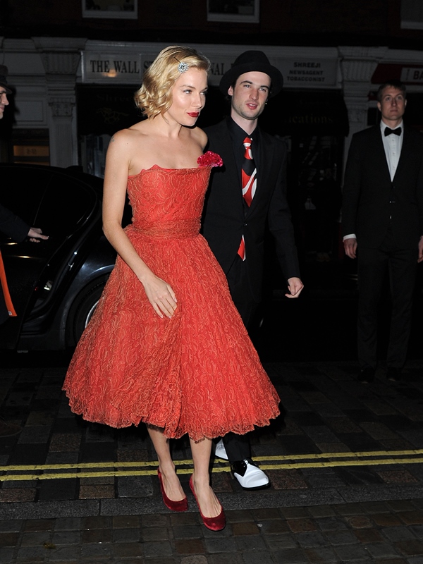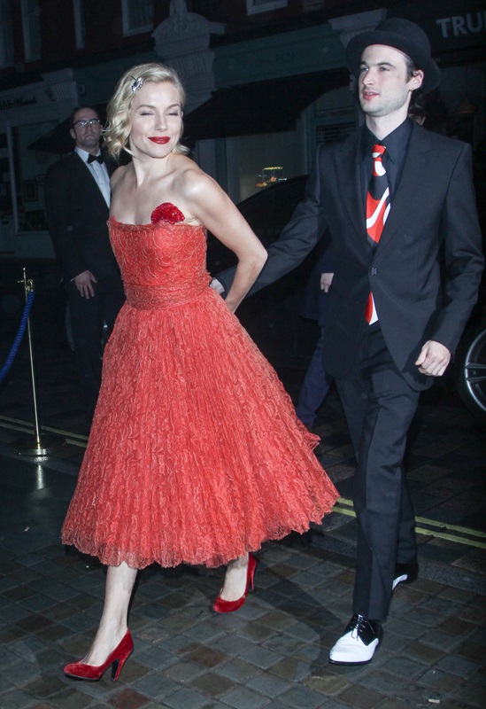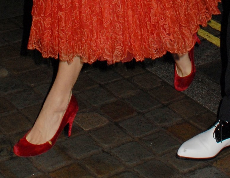 I love her hair and how she’s clipped it back. I love the shoes and how she resisted a leather pump and went with a deeper toned red velvet instead. At least I think it’s velvet. If it’s satin then I take it all back.