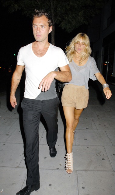 After a brief family holiday in Paris, Sienna and Jude have been in London enjoying their first summer back together, spending time with his kids and also, supposedly, working sh-t out with the kids’ mother Sadie Frost who they say was having a hard time with the reconciliation. Something about one of the children and an unauthorised haircut.