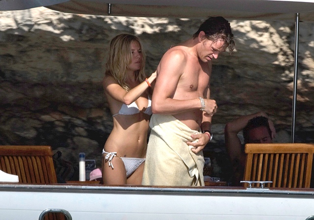 This is Sienna Miller on family holiday in Ibiza with her new boyfriend DJ George Baker. Last year she was in a bikini with Balthazar Getty further tarnishing her reputation. After a tumultuous on again/off again relationship, Balthy has apparently gone back to his wife and four children while Sienna seems to have moved on, enjoying a career on the upswing with the baffling success of G.I. Joe and an upcoming stint on Broadway.