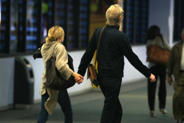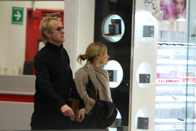 Their love first bloomed on the beach in Spain (attached), now Sienna and Rhys Ifans are headed back to la plage – pictured here at the airport on holiday in Mexico.