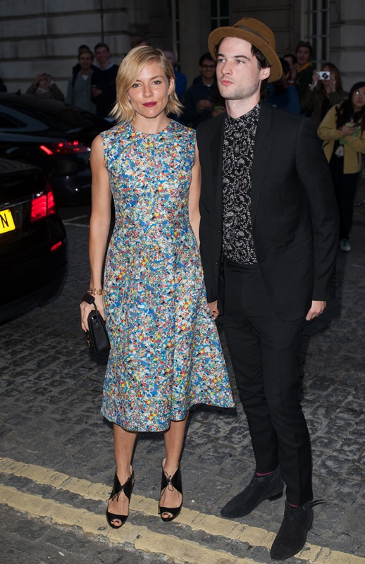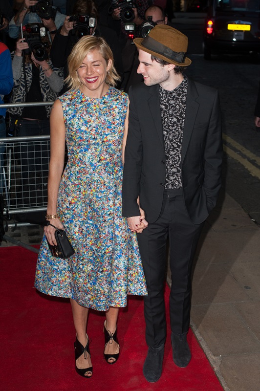 Sienna Miller supported her partner Tom Sturridge at the London premiere of Effie Gray this weekend in London. Great print on that dress. They seem happy and relaxed together. Not that it’s any of my goddamn business but I’m relieved to see that. Professionally, it’s not a good time for Sienna to get restless. And she does.