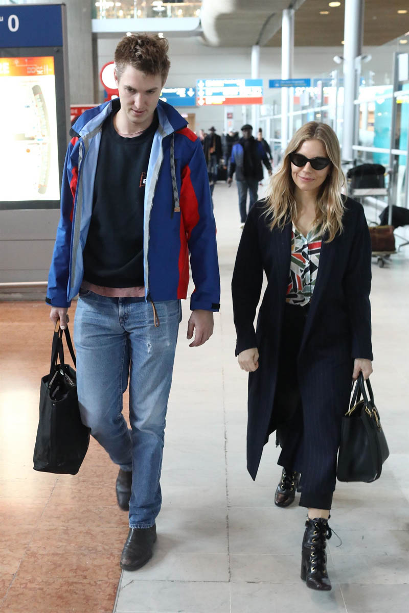 I missed it in January when it was confirmed that Sienna Miller has a new boyfriend. They were photographed together yesterday heading to Paris where she’s expected to attend the Louis Vuitton show. His name is Lucas Zwirner, 27 years old. His family owns art galleries. According to this W profile from last year, in 2015, pretty much straight out of Yale Lucas joined the family business to expand their publishing division with a goal of 25 book releases a year, focusing on the “intersection of writing and visual art”.