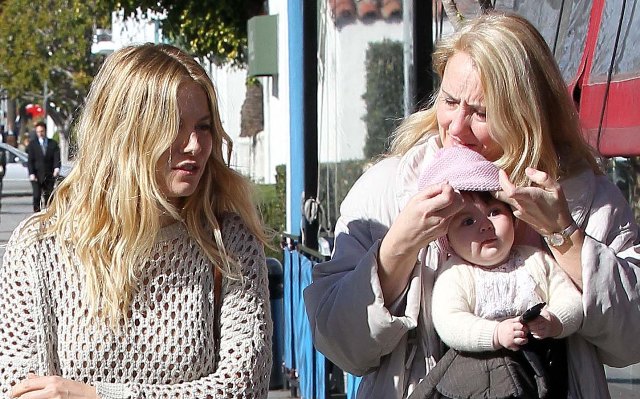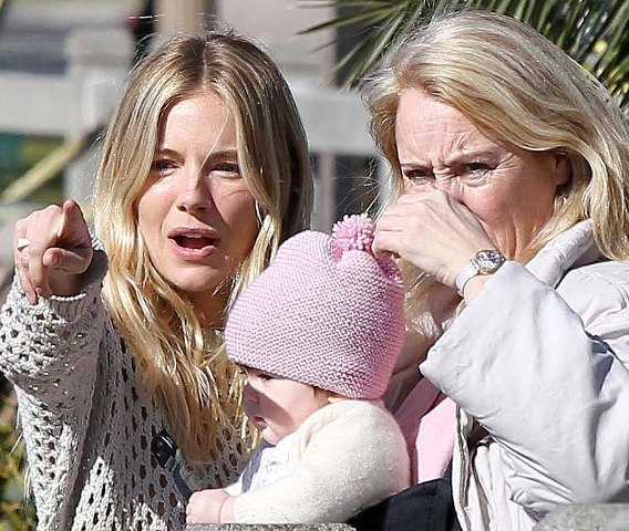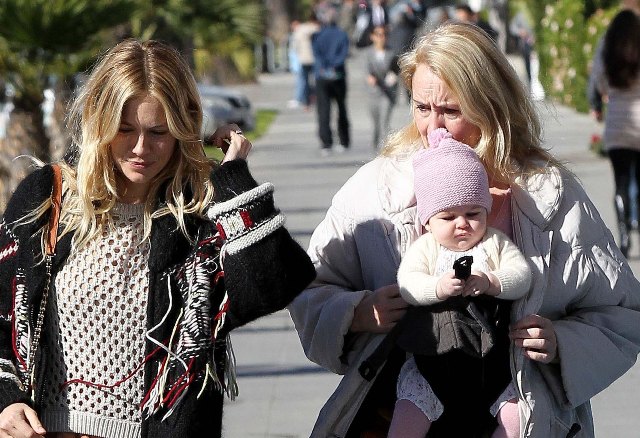 Here she is with her baby Marlowe and her mother (I think) in Santa Monica yesterday. You know, there used to be a time when Sienna would be good for some gossip and scandal whenever she hit up an award show and especially an award show party. Now? I care about what she’ll wear, but I don’t worry anymore, not at all, that she’ll be in the middle of the sh-t on Sunday night.