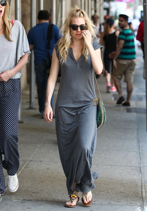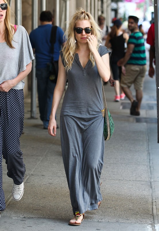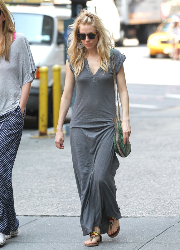 Carpets & Candids: Sienna’s grey maxi and green bag